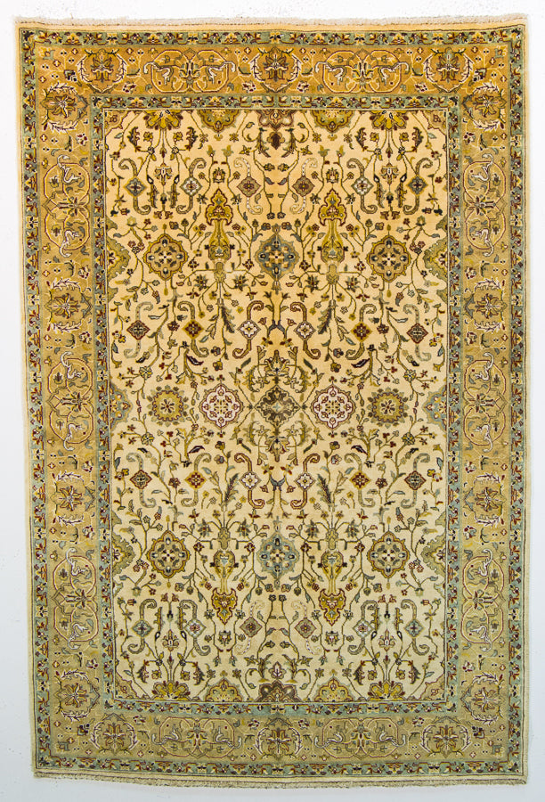 Oriental Sultanabad Wool and Cotton Perisan Rug, Cream and Brown, 4' x 6' Rug