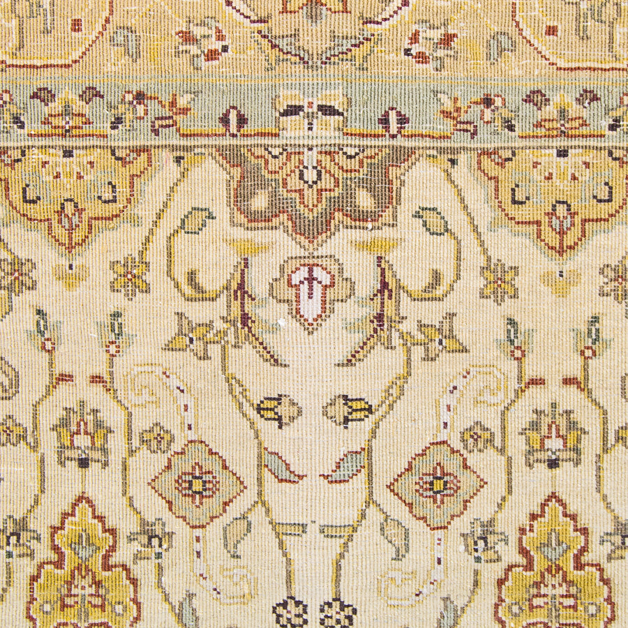 Enjoy centuries of regal beauty and detail in your own home with this authentic Oriental rug. Featuring floral motifs and patterns native to the Sultanabad region, this beautiful rug will reveal new detail each time you take a look. It's primarily gold with contrasting shades of blue and grey to give this rug an elegant look. This style is perfect for living rooms with brown furniture. Sultanabad artisans hand-knotted this Oriental rug. They used techniques and patterns that have been prized around the world for centuries. The wool and cotton blend provides the ideal balance of softness and strength that keeps this rug beautiful for years.