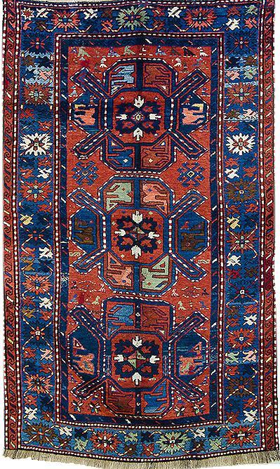 Oriental Turkish Kazak Tribal Diamond Wool Rug, Red and Blue Rug, 4' x 7'5" Rug