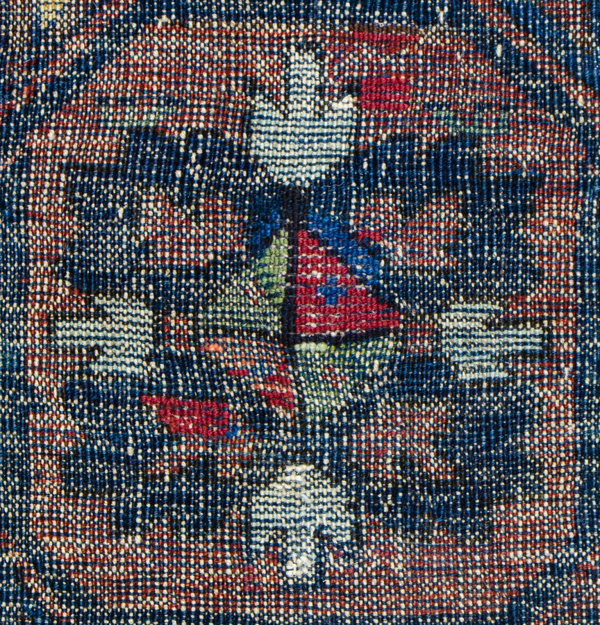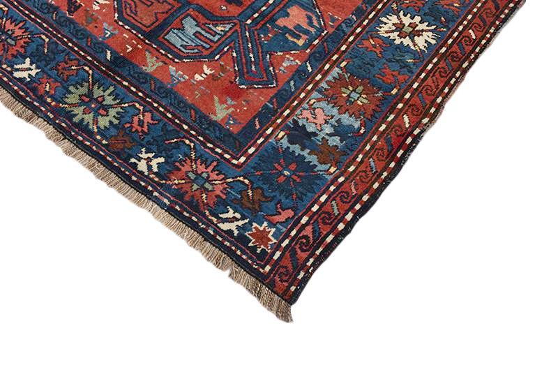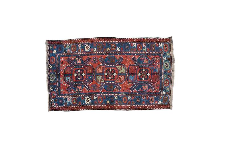 Give your home the gift of centuries-old beauty and tradition with this Kazak style Persian rug. Dyed in traditional shades of red and blue, this beautiful rug makes a nice addition to any home. It features complex graphic motifs in the center. The borders are lined with florals in shades of white and green for a pop of color. It’s a perfect addition to your living room or dining room. Hand-knotted in the traditional Kazak tribal style, this pure wool rug is extra-durable. The quality will remain top-notch through years of wear and tear. Each rug is antiqued with a traditional stone washing method, so each rug is made to be extra-unique. It’s an investment you and your family will enjoy for decades.