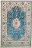 Oriental Turkistan Handmade Silk Oriental Rug, Blue/Beige