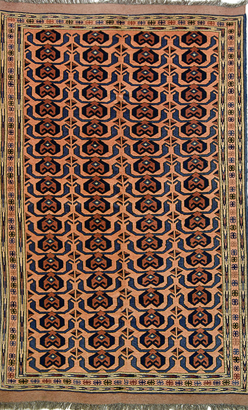 Enjoy traditional patterns and colors with this Turkman tribal rug. A simple tribal pattern common to the Turkman style repeats to perfection throughout the rug. The effect adds space and dimension to any room it's displayed. This Persian rug features traditional shades of red, orange, and blue. Abstract border detail completes the rug with a unique look. Handwoven by talented Turkman artisans, this authentic Persian rug is bursting with quality detail. The hand-knotting technique ensures the wool rug resists wear and tear. The wool material allows this rug to hold up to years of everyday use. Bring this home, and you'll enjoy the traditional elegance for years.