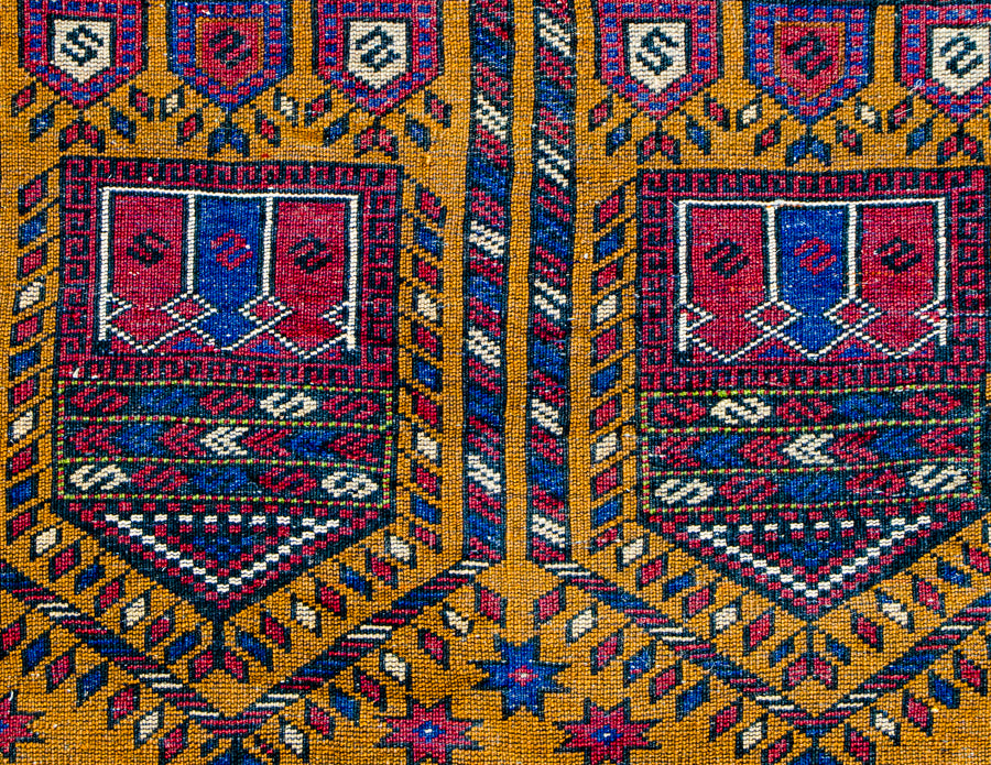 Oriental Turkmen-Style Tribal Pure Wool Rug, Yellow/Red