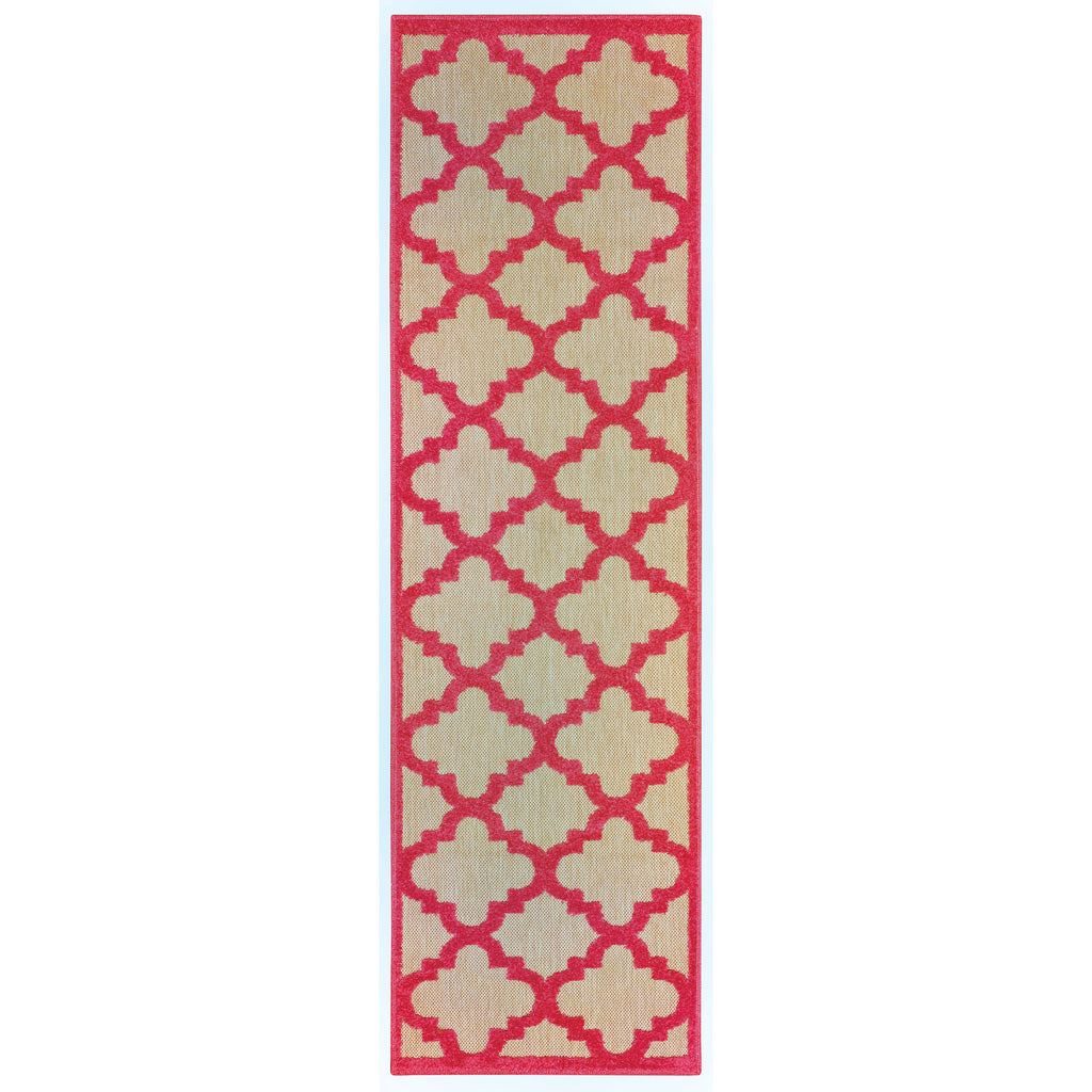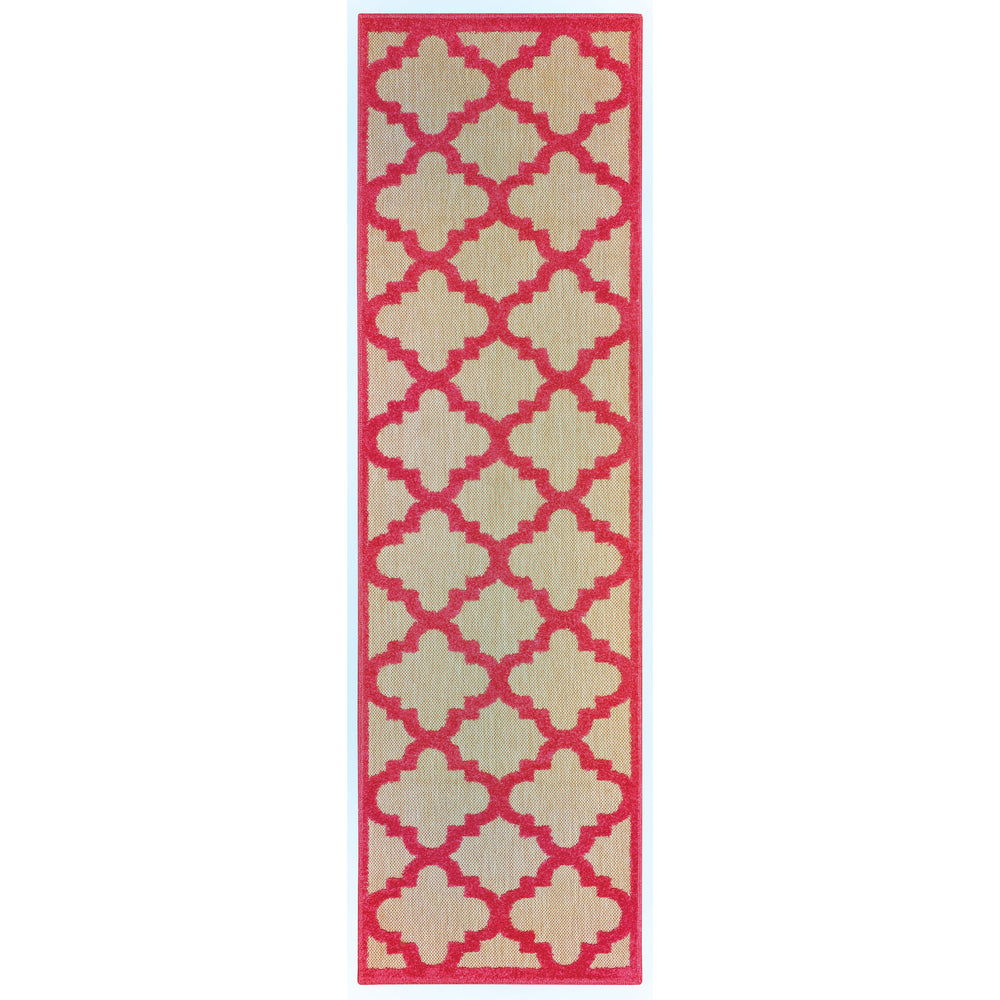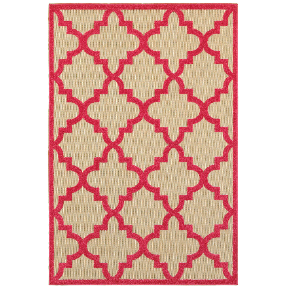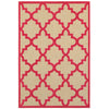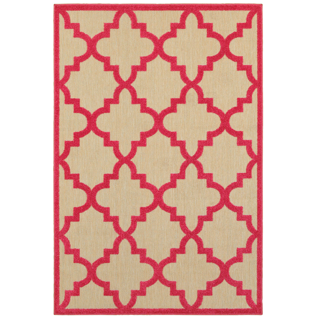 The Cayman collection is machine woven of 100% polypropylene featuring a high/low effect utilizing textured, tri-colored yard in a multi-level cut pile and flat weave construction that can be used inside the home as well as outdoors. Vibrant shades of tangerine, lime, Mediterranean blue, cherry red, charcoal and bright strawberry pink pop on the natural sand colored background in crisp geometric and global inspired patterns.