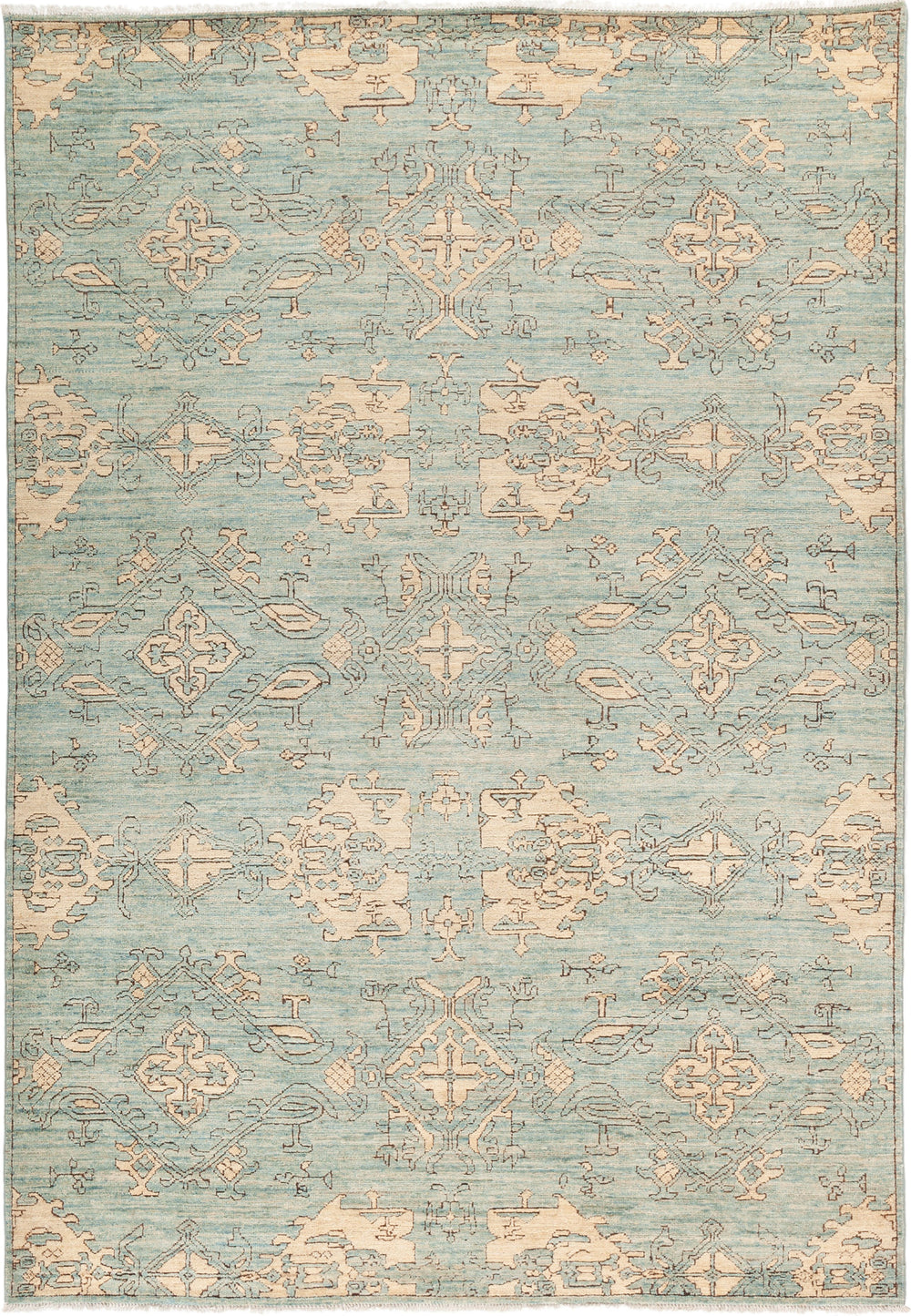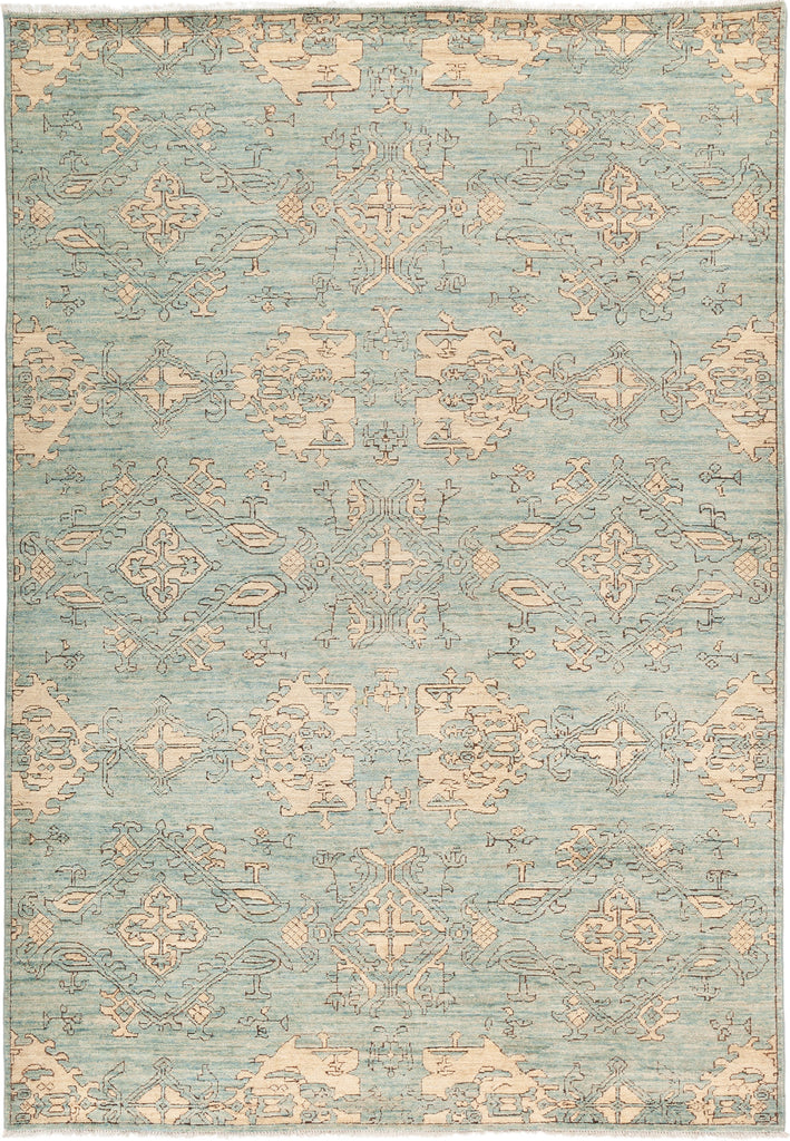 These rugs develop the decorative schemes of late 19th century Turkish carpets. These rugs have large simplified, mostly abstract patterns in light tonalities featuring ivory, pale blue, rust, salmon and light green. The origin of these patterns derive from Persia, but the rendition is strictly more modern and decorative. These carpets can be found in various color ways and in an almost infinite range of patterns suitable for every home.