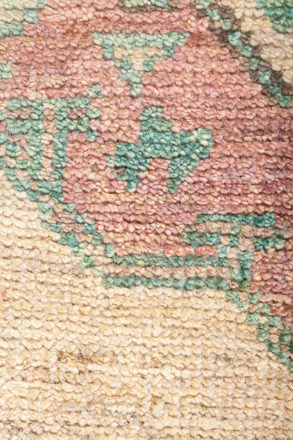 These rugs develop the decorative schemes of late 19th century Turkish carpets. These rugs have large simplified, mostly abstract patterns in light tonalities featuring ivory, pale blue, rust, salmon and light green. The origin of these patterns derive from Persia, but the rendition is strictly more modern and decorative. These carpets can be found in various color ways and in an almost infinite range of patterns suitable for every home.