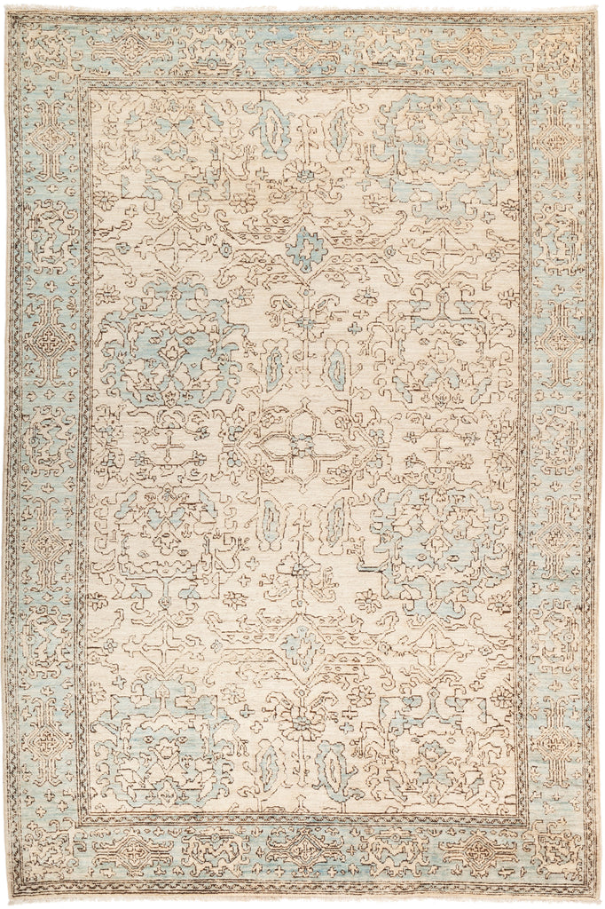 These rugs develop the decorative schemes of late 19th century Turkish carpets. These rugs have large simplified, mostly abstract patterns in light tonalities featuring ivory, pale blue, rust, salmon and light green. The origin of these patterns derive from Persia, but the rendition is strictly more modern and decorative. These carpets can be found in various color ways and in an almost infinite range of patterns suitable for every home.