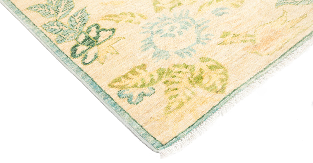 These rugs develop the decorative schemes of late 19th century Turkish carpets. These rugs have large simplified, mostly abstract patterns in light tonalities featuring ivory, pale blue, rust, salmon and light green. The origin of these patterns derive from Persia, but the rendition is strictly more modern and decorative. These carpets can be found in various color ways and in an almost infinite range of patterns suitable for every home.