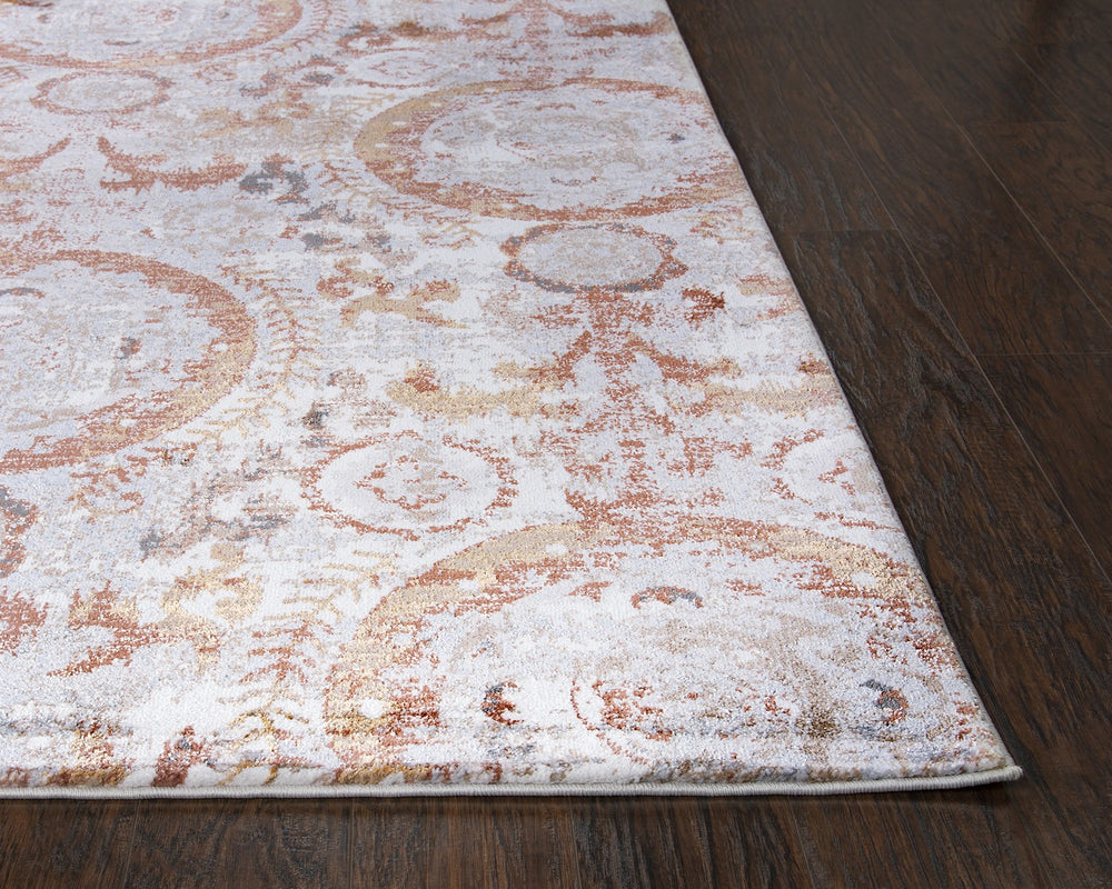 Our designers have hit the mark when it comes to creating a truly “Transitional” collection that is on trend for almost any look you’re trying to achieve! Our Bristol collection is Power Loomed in Turkey using easy to care for Polypropylene and accented with touches of shimmering Polyester. Using a color combination of a Beige back field that is just right, not too White, not too Yellow, the accents of Copper and Gray Blue create a look that is stunning and unique!