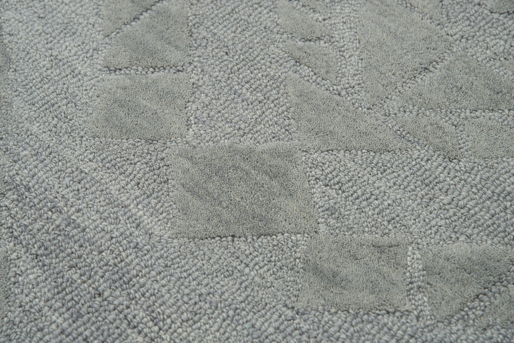 Mixing a fine, low, cut and loop pile in wool, makes this tone on tone rug a sophisticated choice that is easy to blend with most any upholstery or décor! The soft Gray color takes on lighter or darker tones depending on the angle it is viewed from making it even more versatile!