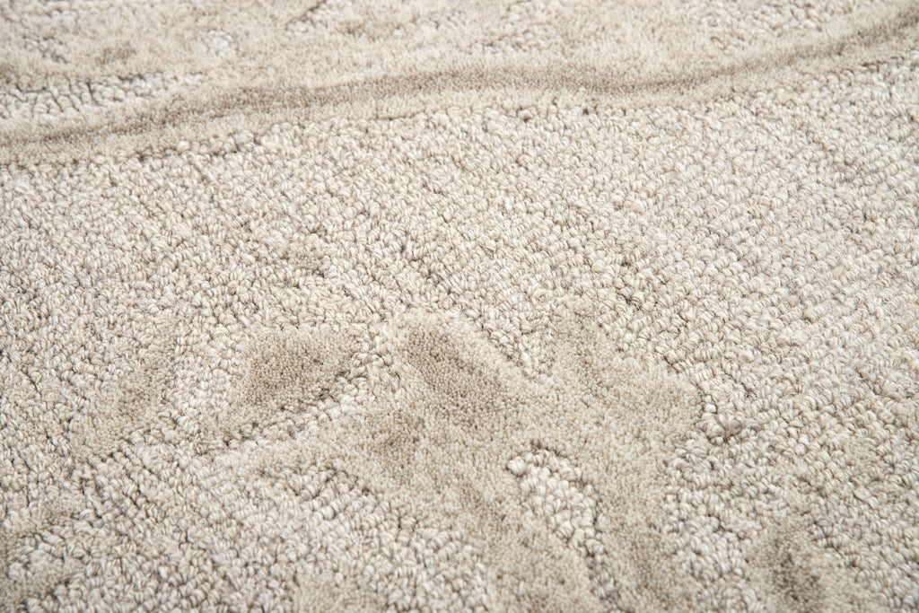 Mixing a fine, low, cut and loop pile in wool, makes this tone on tone rug a sophisticated choice that is easy to blend with most any upholstery or décor! The soft Cream color takes on lighter or darker tones depending on the angle it is viewed from making it even more versatile!