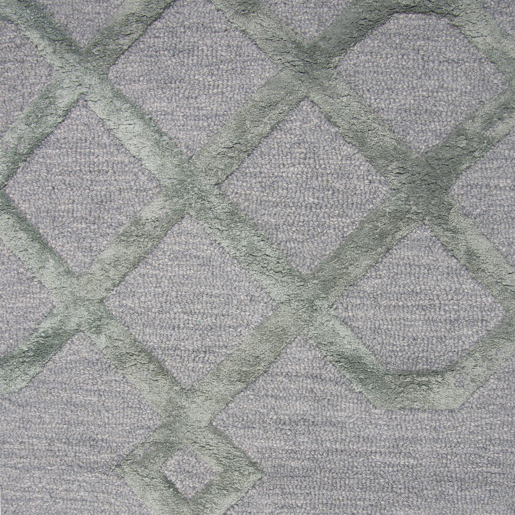 Great design, stunning color and skilled craftsmanship all come together at once to create these masterpieces. Skilled artisan’s painstaking tuft looped color fields of soft, solid colored wool and overlay a crisp, Geometric pattern in shimmering Viscose. To add to the drama, the design accents are hand sheared at a slightly taller height creating 3-D effects that makes the designs literally jump out!