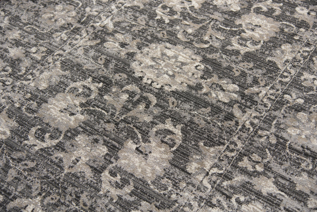 Using antique Persian carpets as an inspiration, the artist has updated this design through the clever use of scale and faux wear pattrns. By using a wide variety of shades in today’s hottest colors, the Blues, Grays and Cream accents make this rug on point for today’s hot trends. Power loomed in India using an exclusive new yarn called" ZIRLON" which has the rich look and soft feel of wool, with the cleanability and affordability of traditional synthetic fibers.