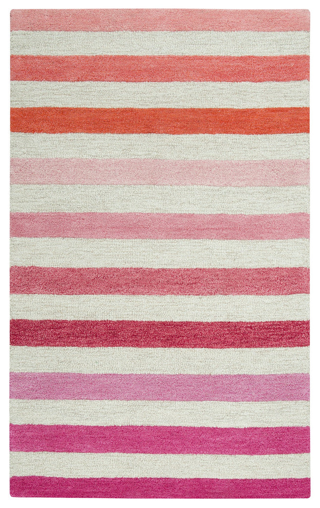 Add instant color to any room with this multi toned Pink stripped rug. Hand tufted by the skilled weavers in India, each piece is created with 100% Wool and great attention to detail.