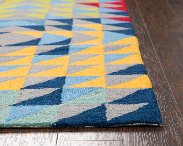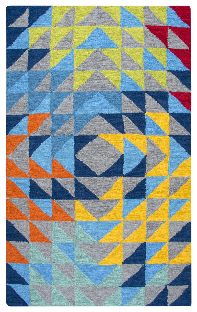 Colorful and creative, the playful arrangement of these Multi colored, triangles will add instant FUN to any space! Hand tufted by the skilled weavers in India, each piece is created with 100% Wool and great attention to detail.