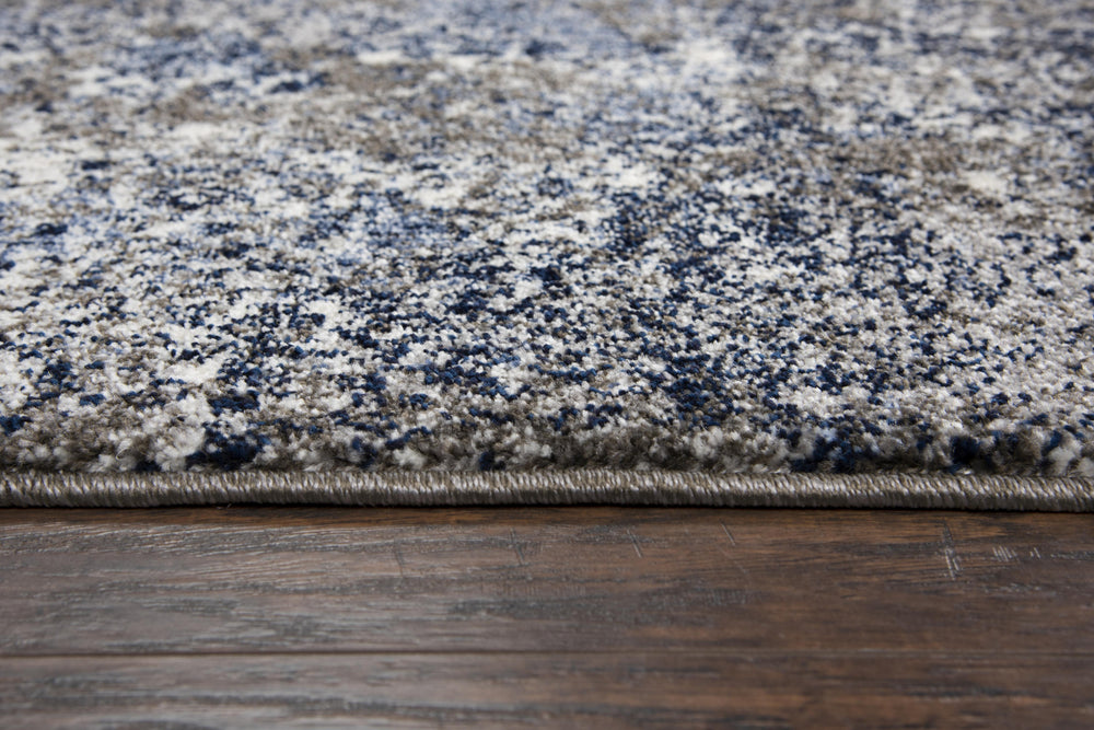 The Valencia area rug from Rizzy Home is a soft low pile frizze that brings a touch of elegance to it's space. The subtle gray tones and watercolor looks evoke the feeling of marble or granite stones. These pieces are machine made in Turkey of 100% very soft polypropylene.