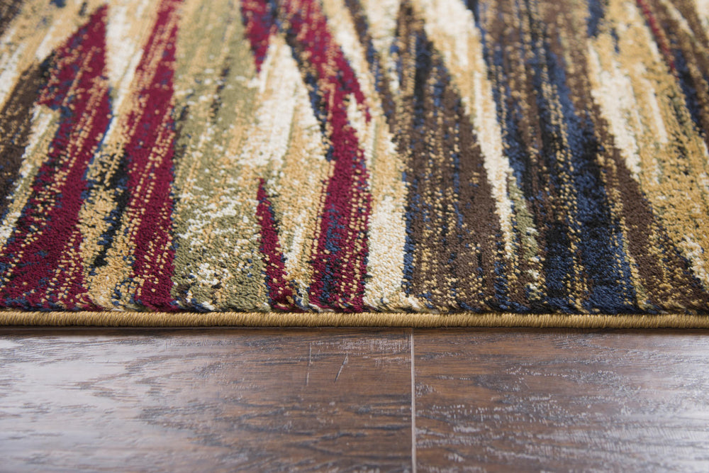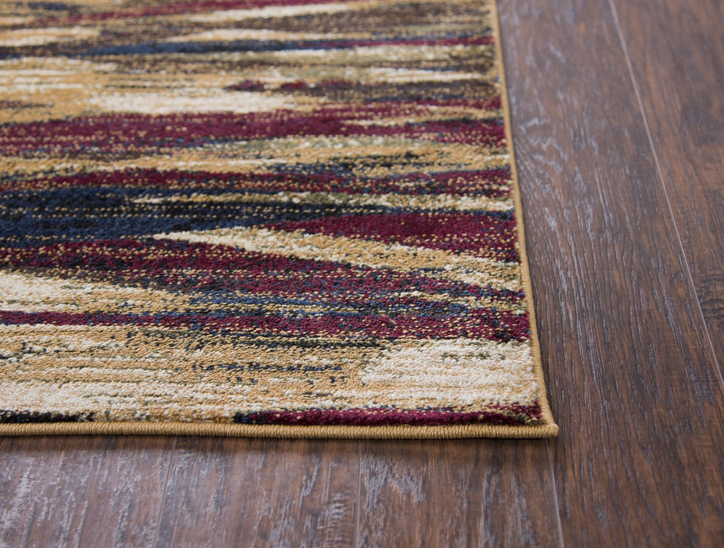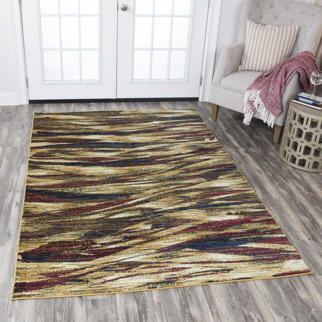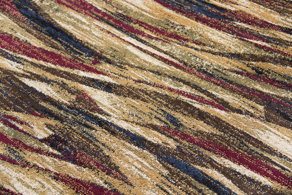 Designed to fit a wide variety of design styles including Modern,Caual and Transitional, the gentle curved design is reminicent of calming ocean waves while the sharp contrasting colors create drama. Using Traditional tones of Brown, Burgundy, Gold, Green and Ivory this rug will blend seamlessly into many homes. Power loomed, of soft, durable, easy to care for heat set Polypropylene, makes these rugs affordable and perfect for an active family on the go!