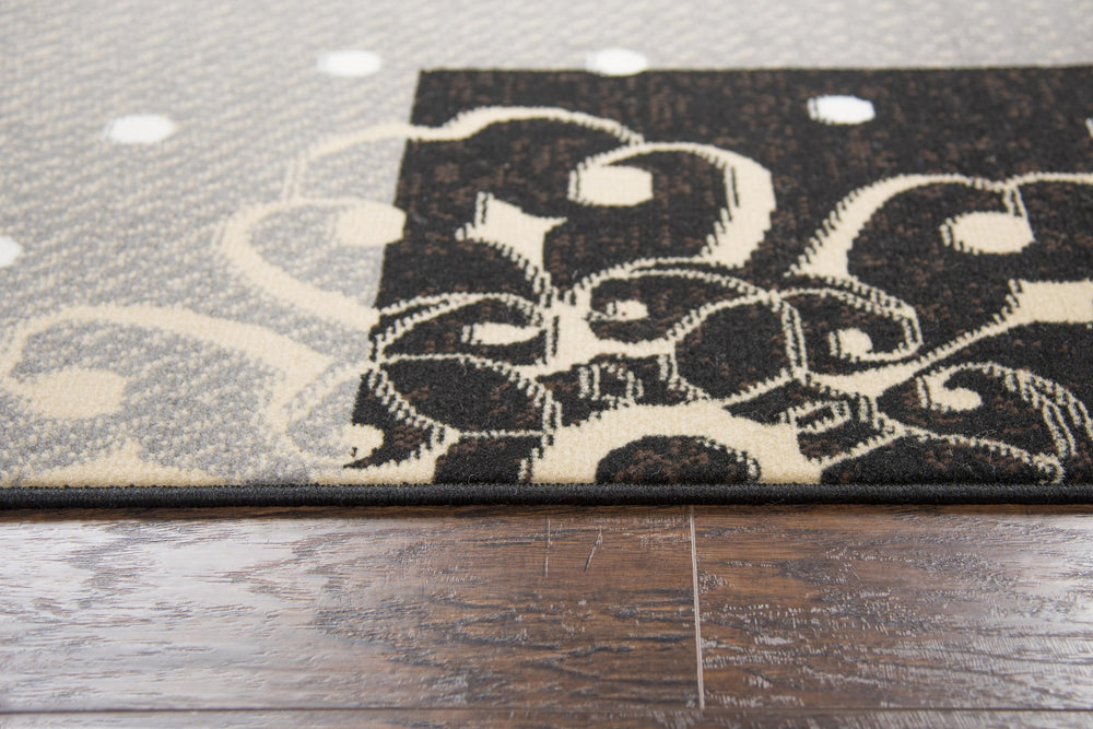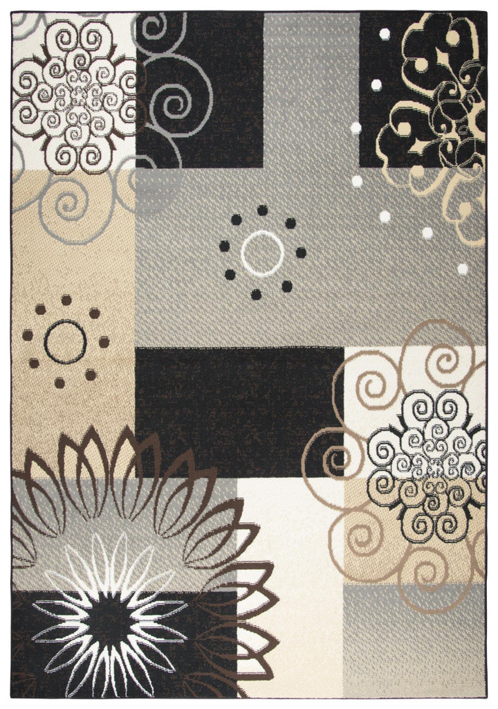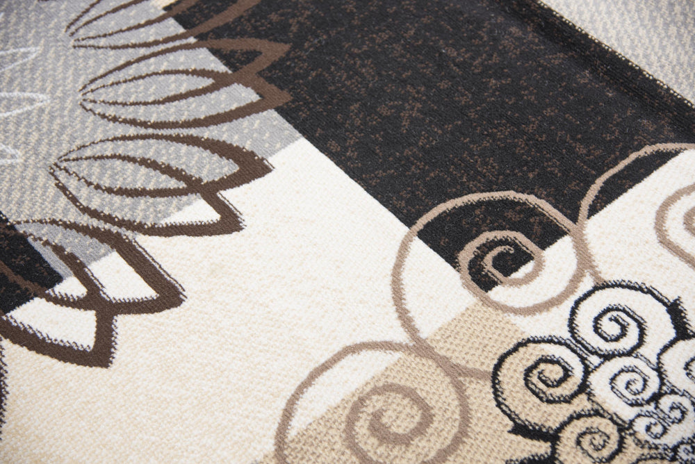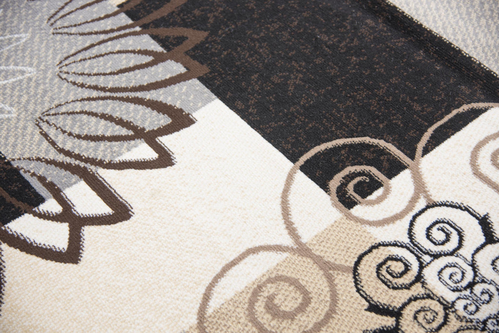 Beautiful scrol medallions combine with modern color blocking to create this stunning work of art. High contrasting colors of soft Cream, Rich Burgundy, Natural Tan, Black and Gray make a stunning color combination to set the stage for good design. Power loomed using easy to care for Polypropylene. Durable and affordable with style that is second to none!