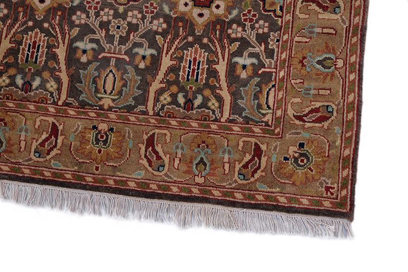 Amazingly posh, this stunning Sultanabad rug boasts a very royal look rug depicting the craftsmanship of the bygone 19th century’s Persian technique. The muted colors of dark brown and light green in this rug savors the whole setting wherever it gets thrown at! An all-over floral motif with a touch of abstractions seen throughout the carpet gives an unexpected twist to its outlook. The leafy palmettes, flowering vines and serrated leaves pattern with the same leafy border make this Sultanabad rug an imposing one. One of the genuine treasures of the past, this rug’s meticulous hand-knotted wool makes it even more pleasing to look at.