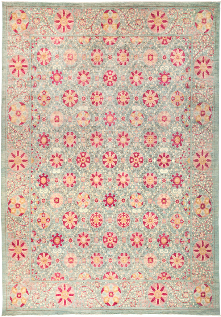 Suzani, Hand Knotted Area Rug - 12' 1" x 17' 1"