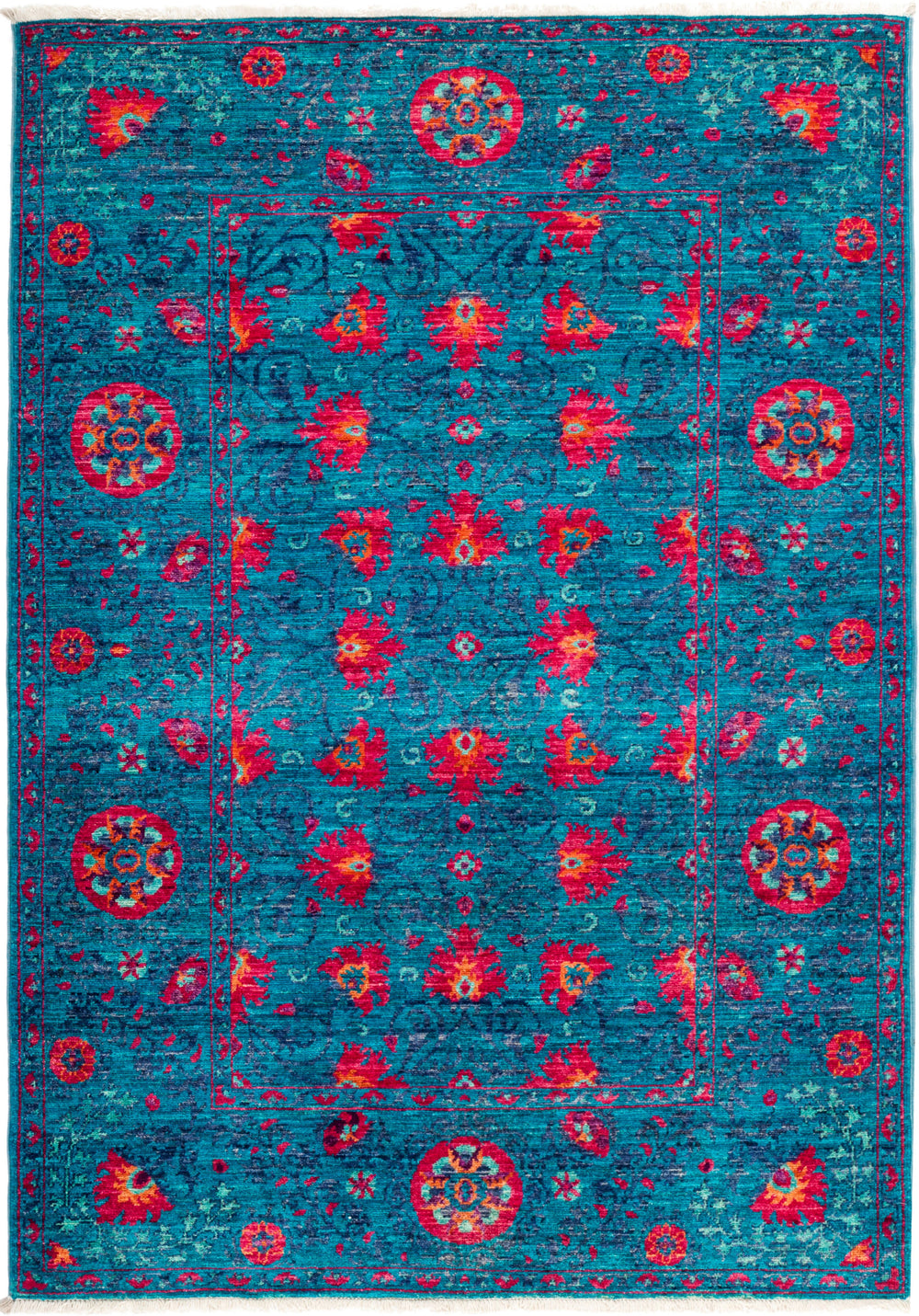 Inspired by embroidered Suzani textiles from Uzbekistan, Solo Rugs Suzani Collection features floral motifs in modern palettes and compositions. Hand-knotted of vegetable-dyed wool, the rugs are designed to retain their vibrancy for generations to come.