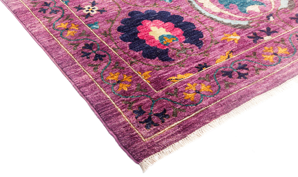 Inspired by embroidered Suzani textiles from Uzbekistan, Solo Rugs Suzani Collection features floral motifs in modern palettes and compositions. Hand-knotted of vegetable-dyed wool, the rugs are designed to retain their vibrancy for generations to come.