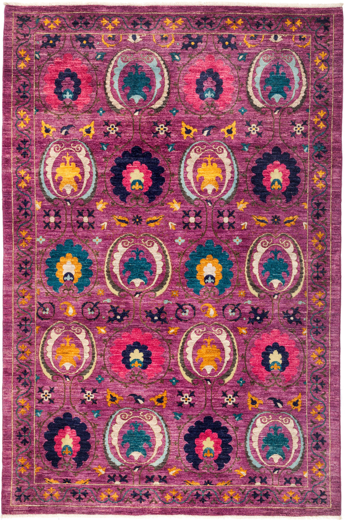 Suzani, Hand Knotted Area Rug - 5' 10" x 8' 10"