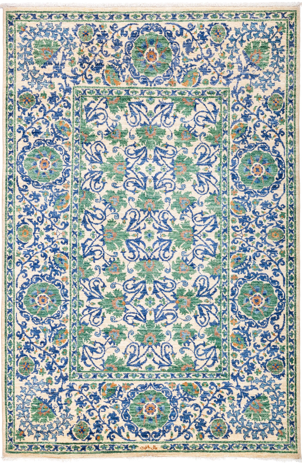 Suzani, Hand Knotted Area Rug - 5' 2" x 7' 6"