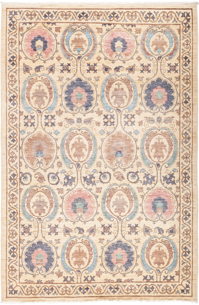Suzani, Hand Knotted Area Rug - 5' 2" x 7' 7"