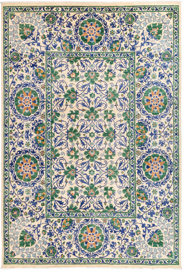 Inspired by embroidered Suzani textiles from Uzbekistan, Solo Rugs Suzani Collection features floral motifs in modern palettes and compositions. Hand-knotted of vegetable-dyed wool, the rugs are designed to retain their vibrancy for generations to come.