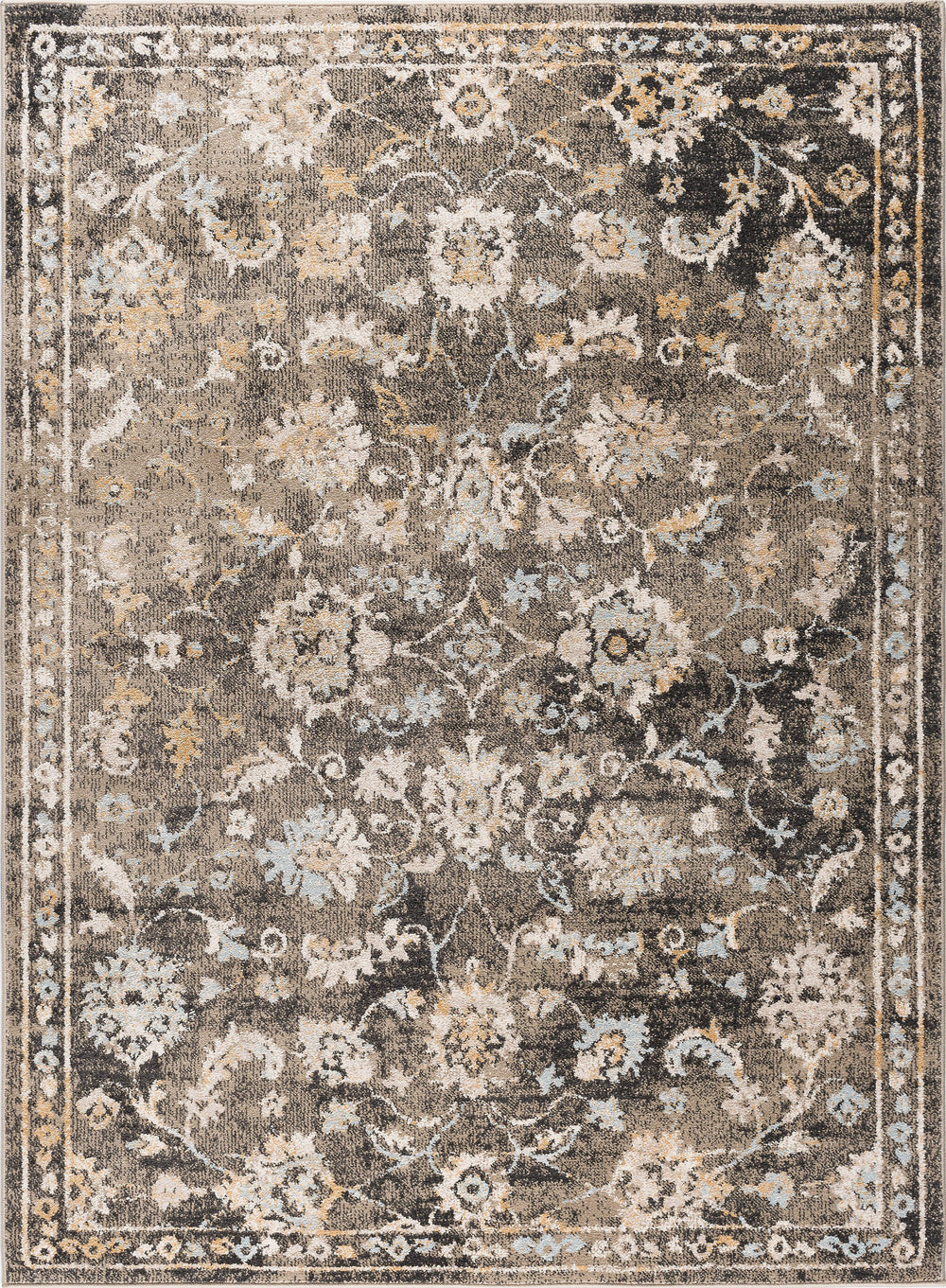 Glamorize your life with the tonal background and filigree design of this transitional area rug. Get the vintage, distressed look without spending your inheritance. Power loom, machine made of soft polypropylene yarn to make this rug a great value. Jute backing gives it a substantial feel. Vacuum to restore pile; spot clean with mild detergent and water when necessary. Do not bleach.