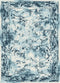 This timeless transitional design area rug has a muted pattern in soft hues. The distressed finish reveals enduring luxury. Made of 100% polypropylene yarns for a soft feel and natural stain resistance. Hemmed short edges complete the handmade look. In neutral colors of teal on a cream background.