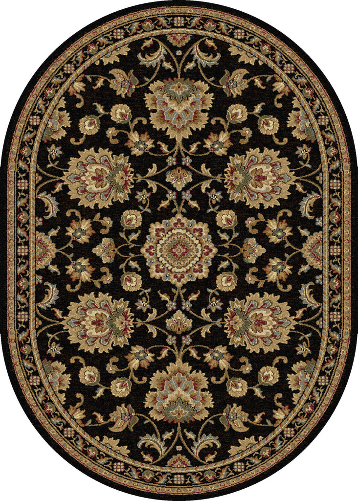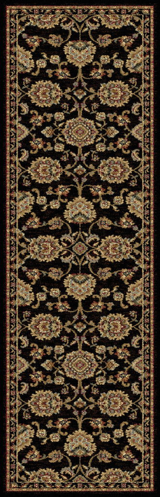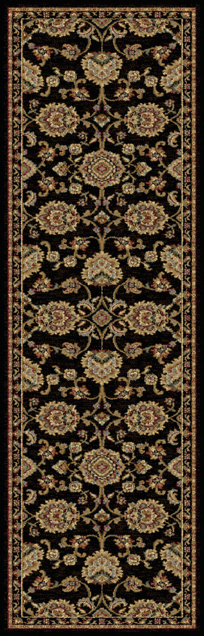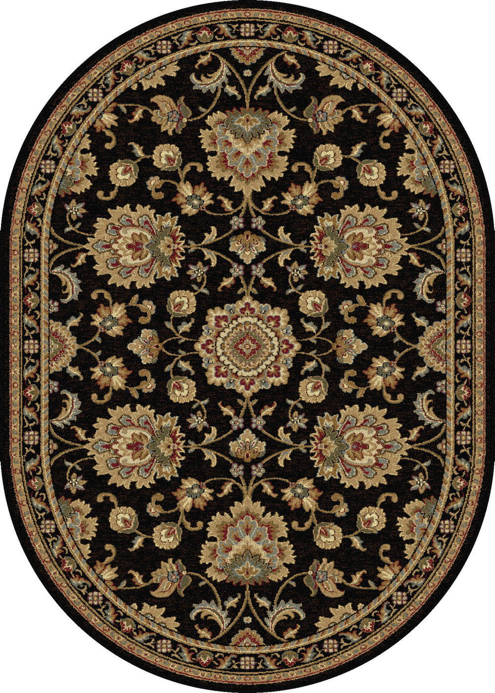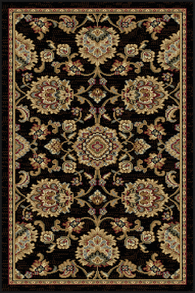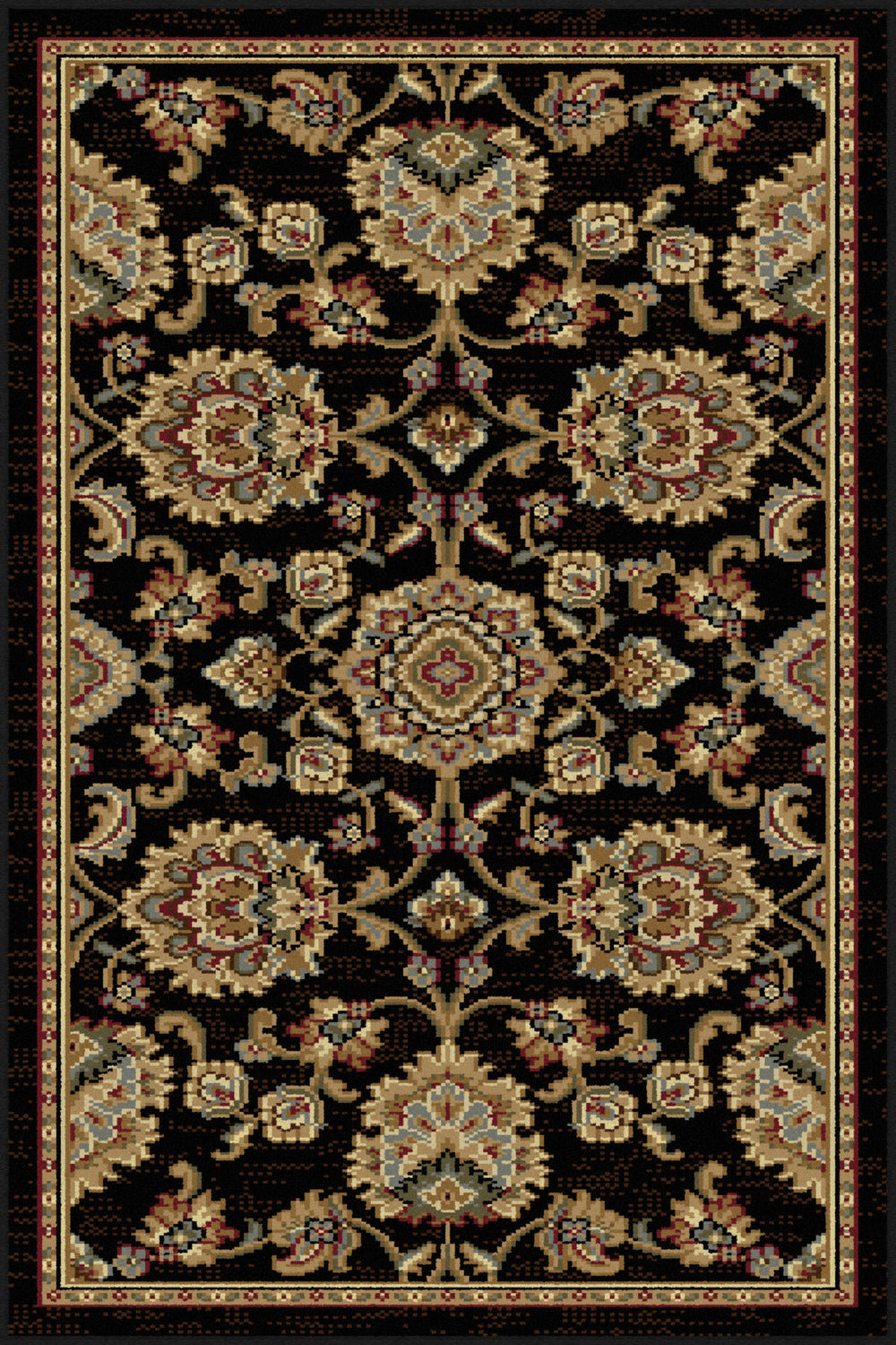 Infuse an air of elegance to any room with this oriental traditional area rug. Ornate floral with intricate border. Jet black background with fawn beige, bone ivory, brass, scarlet, fern green, and cadet blue. Easy to maintain because the soft polypropylene fibers are naturally stain-resistant. Vacuum to restore pile; spot clean with mild detergent and water when necessary; do not bleach.