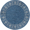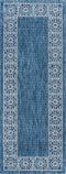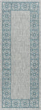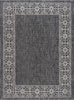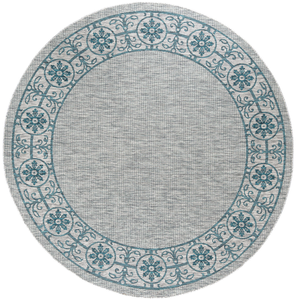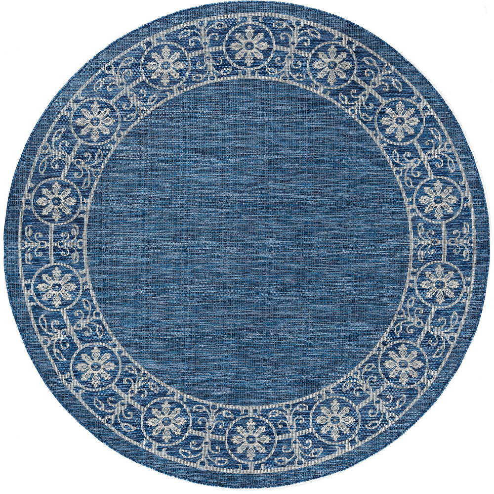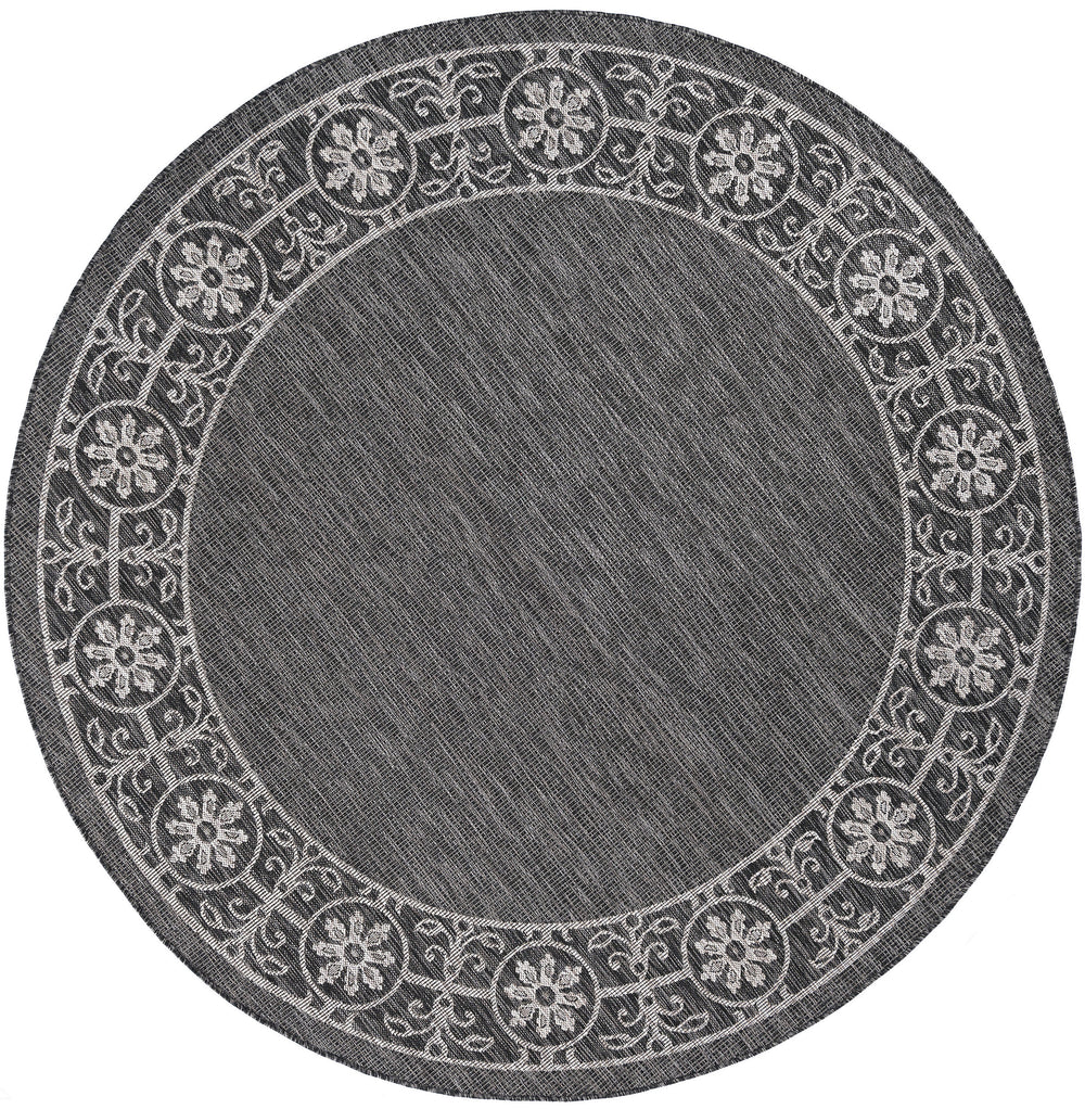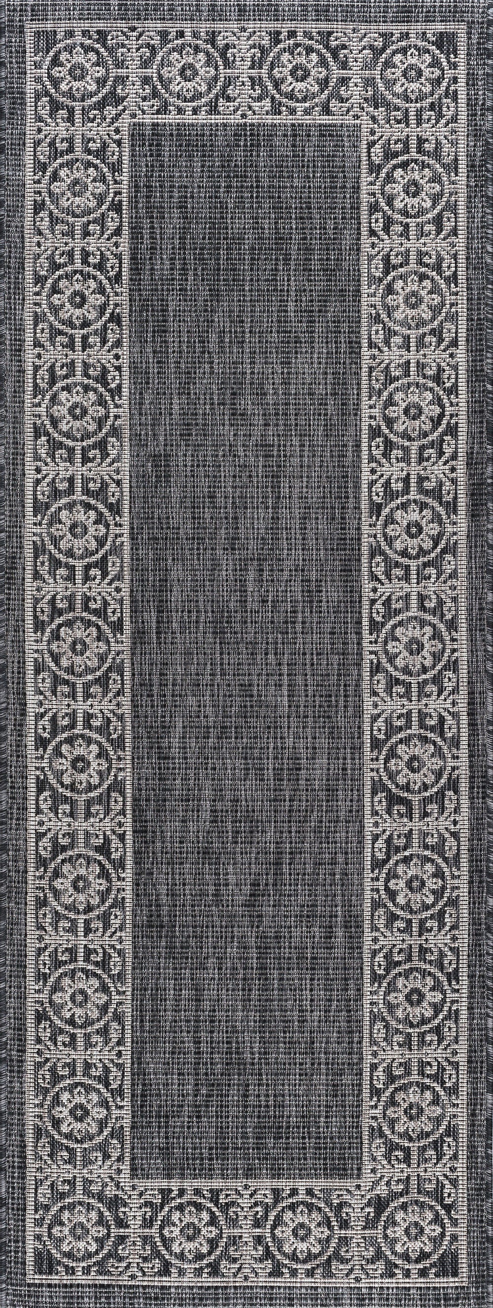 Make a cozy habitat by blending this traditional indoor or outdoor border design area rug into your décor. The classic pattern is enhanced with a floral motif on a heathered solid background. Perfect for an indoor mudroom, entryway, hallway, family room, kids room, basement, or anywhere you are looking for a durable and appealing solution. Machine made, power loomed of 100% polypropylene to stay fresh outdoors on a patio, porch, sunroom, portico, pavilion or deck. Clean with mild detergent and hose with water. Do not bleach.