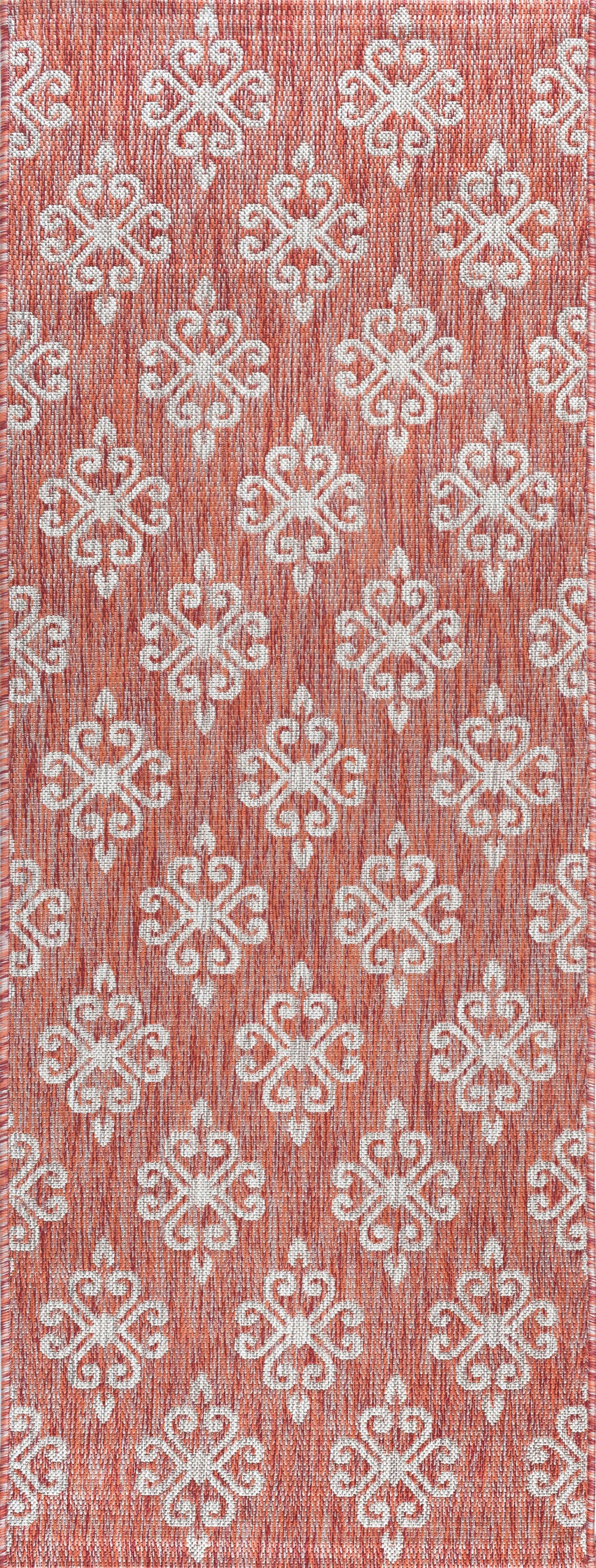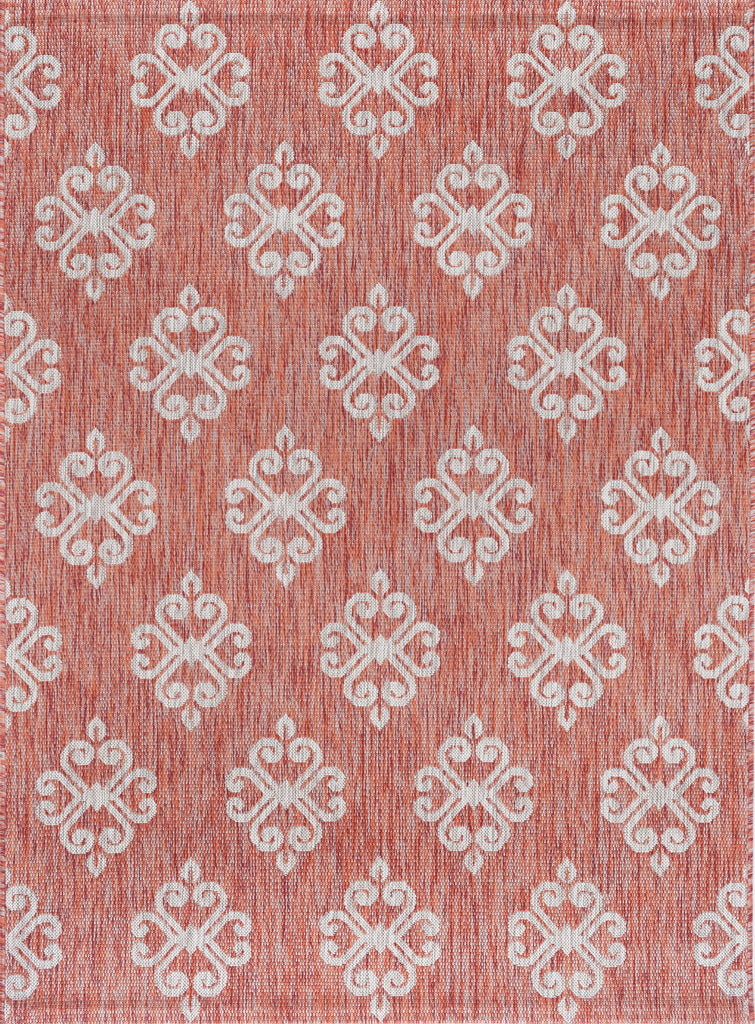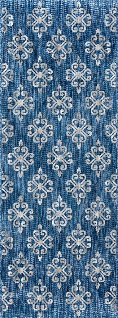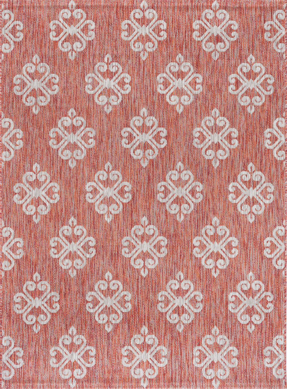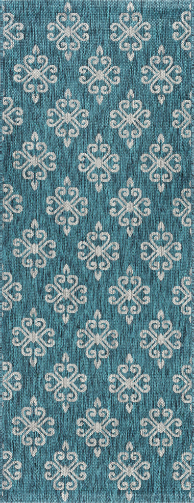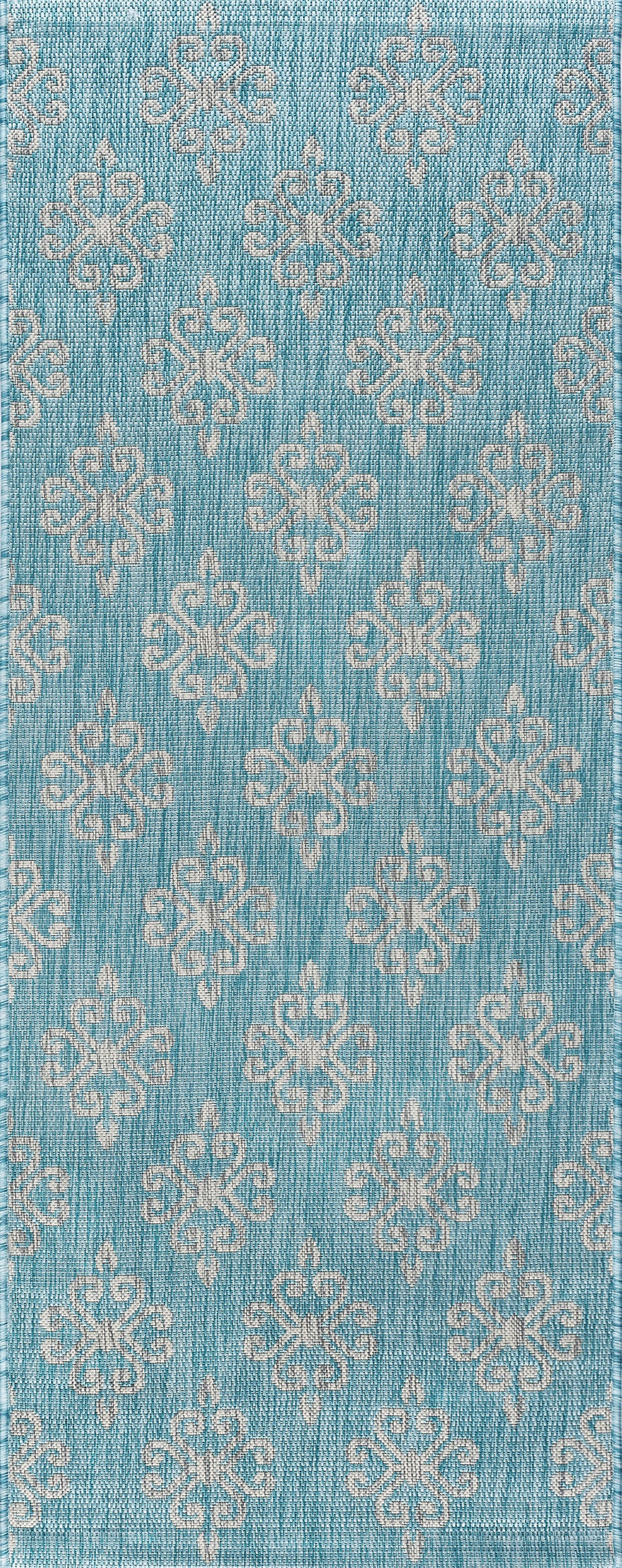 Update to a fresh new look with this indoor or outdoor filigree area rug. The marquise shaped medallions add the perfect touch to transitional, traditional, and contemporary décor. Perfect for an indoor mudroom, entryway, hallway, family room, kids room, basement, or anywhere you are looking for a durable and appealing solution. Machine made, power loomed of 100% polypropylene to stay fresh outdoors on a patio, porch, sunroom, portico, pavilion or deck. Clean with mild detergent and hose with water. Do not bleach.