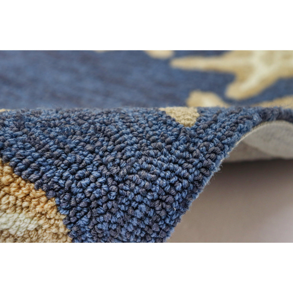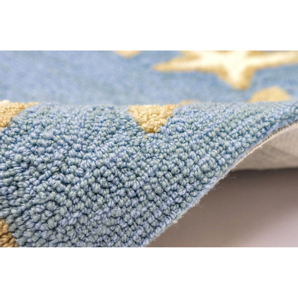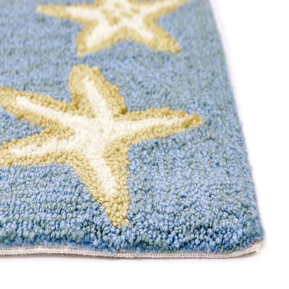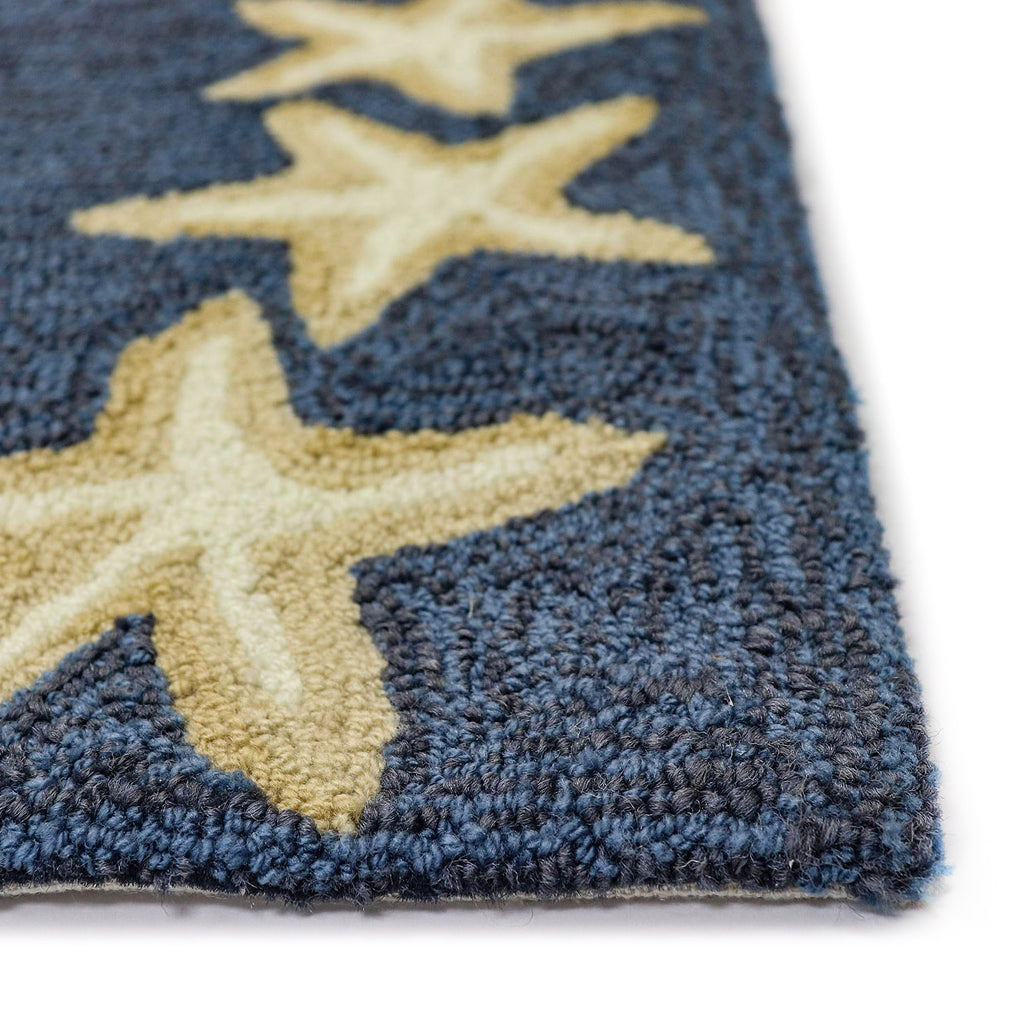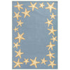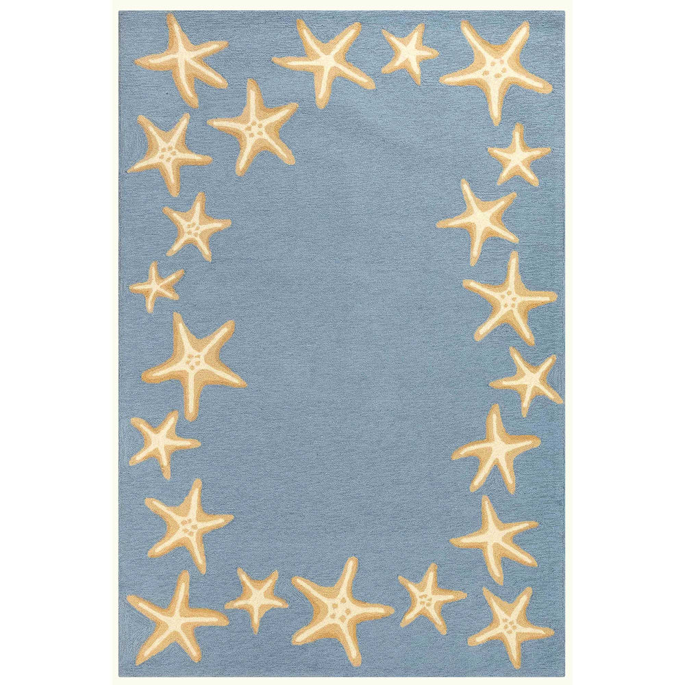 Our coastal-inspired Starfish Border rug is subtle yet adds visual appeal to your décor. The simple yet fashionable pattern lends itself well to the flatwoven nature. Hand hooked of weather-resistant fiber, this collection is a blend of comfort, softness and durability. Capri features vivid color and is treated for added fade resistance. Limiting exposure to rain, moisture and direct sun will prolong rug life.