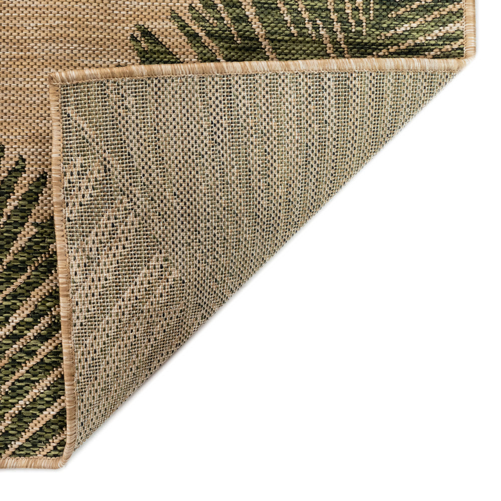 Casual and easy care, our palm leaf rug is a perfect decorating solution either indoors or outdoors. Wilton woven of 100% polypropylene fibers, it can be hosed off for easy cleaning. Fibers are UV stabilized to minimize fading. Wilton Woven of weather-resistant polypropylene, this flatwoven collection has subtle and natural beauty. There is no need to sacrifice style with these versatile rugs. The low-profile nature of Carmel offers a casual, lifestyle look to use nearly anywhere inside or outside the home.