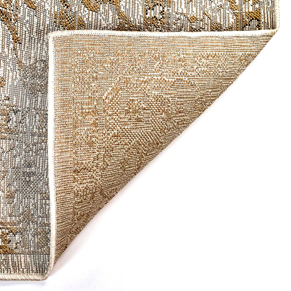 The subtle, masterfully distressed finish of this rug adds to the overall vintage look while multi-dimensional shading enhancing its striking floral design. Wilton Woven of weather-resistant polypropylene, this flatwoven collection has subtle and natural beauty. There is no need to sacrifice style with these versatile rugs. The low-profile nature of Carmel offers a casual, lifestyle look to use nearly anywhere inside or outside the home.