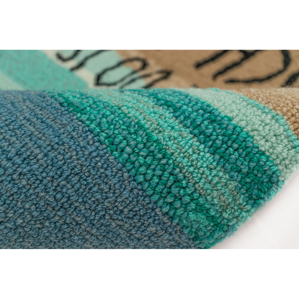 With a quirky play on words and bright colors, this beach-inspired mat is a fun addition to any home. Hand hooked of weather-resistant fiber, this collection is a blend of comfort, softness and durability. Frontporch is remarkably easy to clean and treated for added fade resistance. Limiting exposure to rain, moisture and direct sun will prolong mat life.
