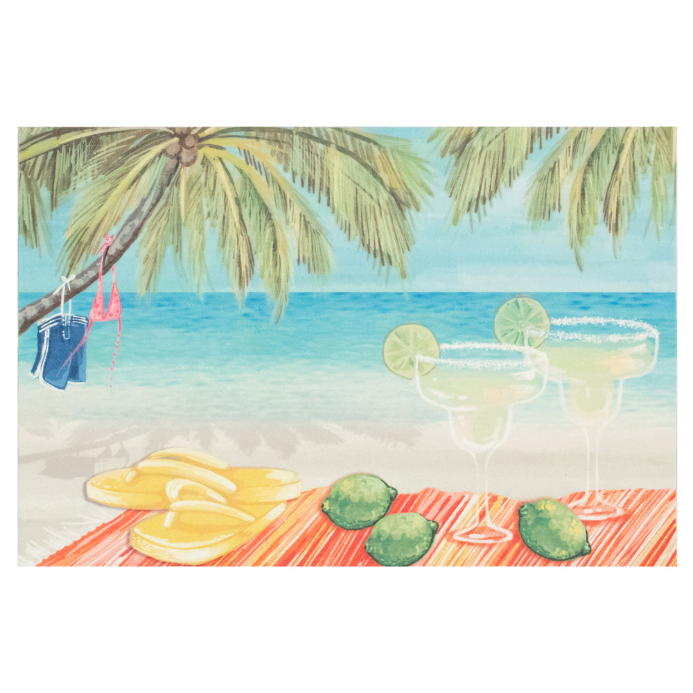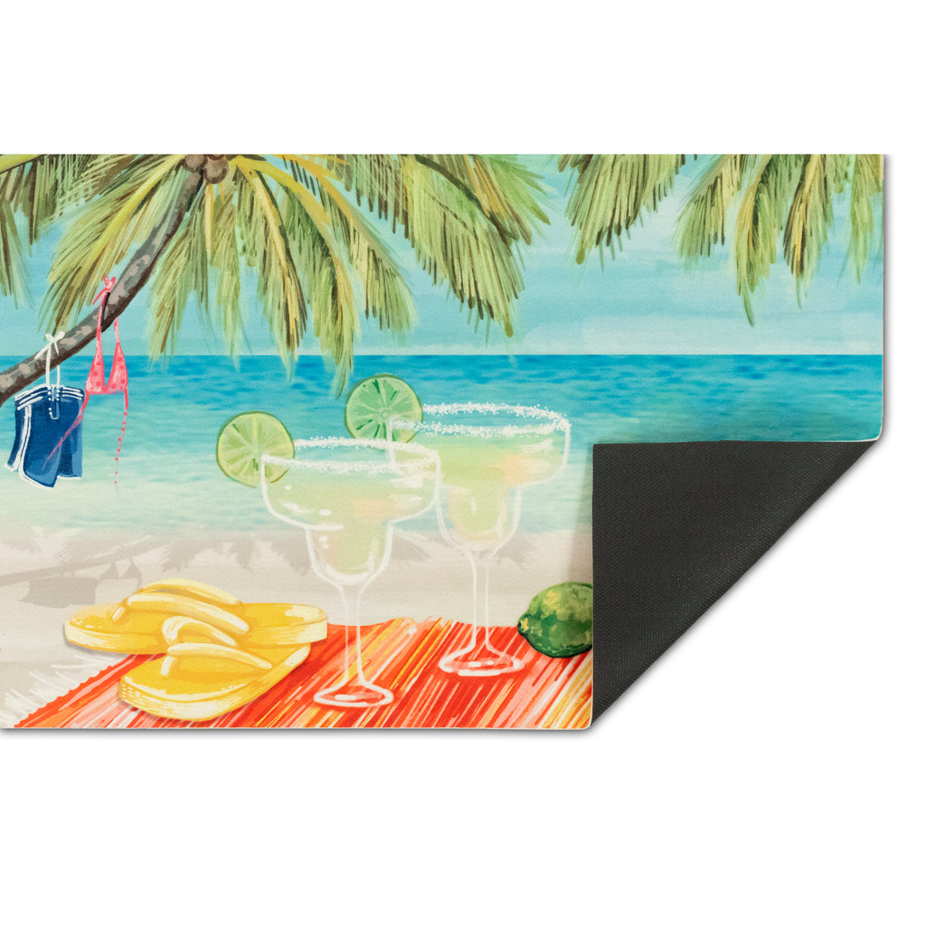 This beach party mat takes you away to your favorite ocean beachfront spot for that “Best Vacation Ever” kind of a day! Illusions is versatile and timeless, crafted of 100% Polyester, reflecting well-defined design clarity and precision. It's unique construction allows for unlimited design possibilities. Reinforced with a rubber non-skid backing, it's perfect for any high-traffic area inside or outside the home. Illusions mats are remarkably low-maintenance, machine-washable and low-profile. They are hypoallergenic, shed-free and treated for added fade resistance making them virtually worry-free utility mats. Limiting exposure to rain, moisture and direct sun will prolong mat life.
