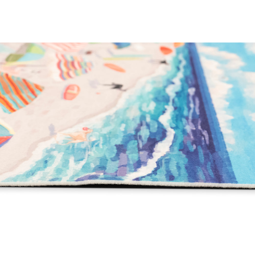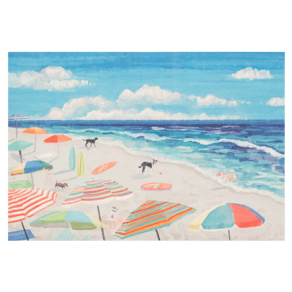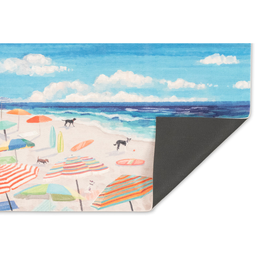 In the Dog Days of Summer all the dogs head for the beach! This beautiful fun, fantasy mat has dogs playing at the beach and is a great mat for any pet lover. Illusions is versatile and timeless, crafted of 100% Polyester, reflecting well-defined design clarity and precision. It's unique construction allows for unlimited design possibilities. Reinforced with a rubber non-skid backing, it's perfect for any high-traffic area inside or outside the home. Illusions mats are remarkably low-maintenance, machine-washable and low-profile. They are hypoallergenic, shed-free and treated for added fade resistance making them virtually worry-free utility mats. Limiting exposure to rain, moisture and direct sun will prolong mat life.