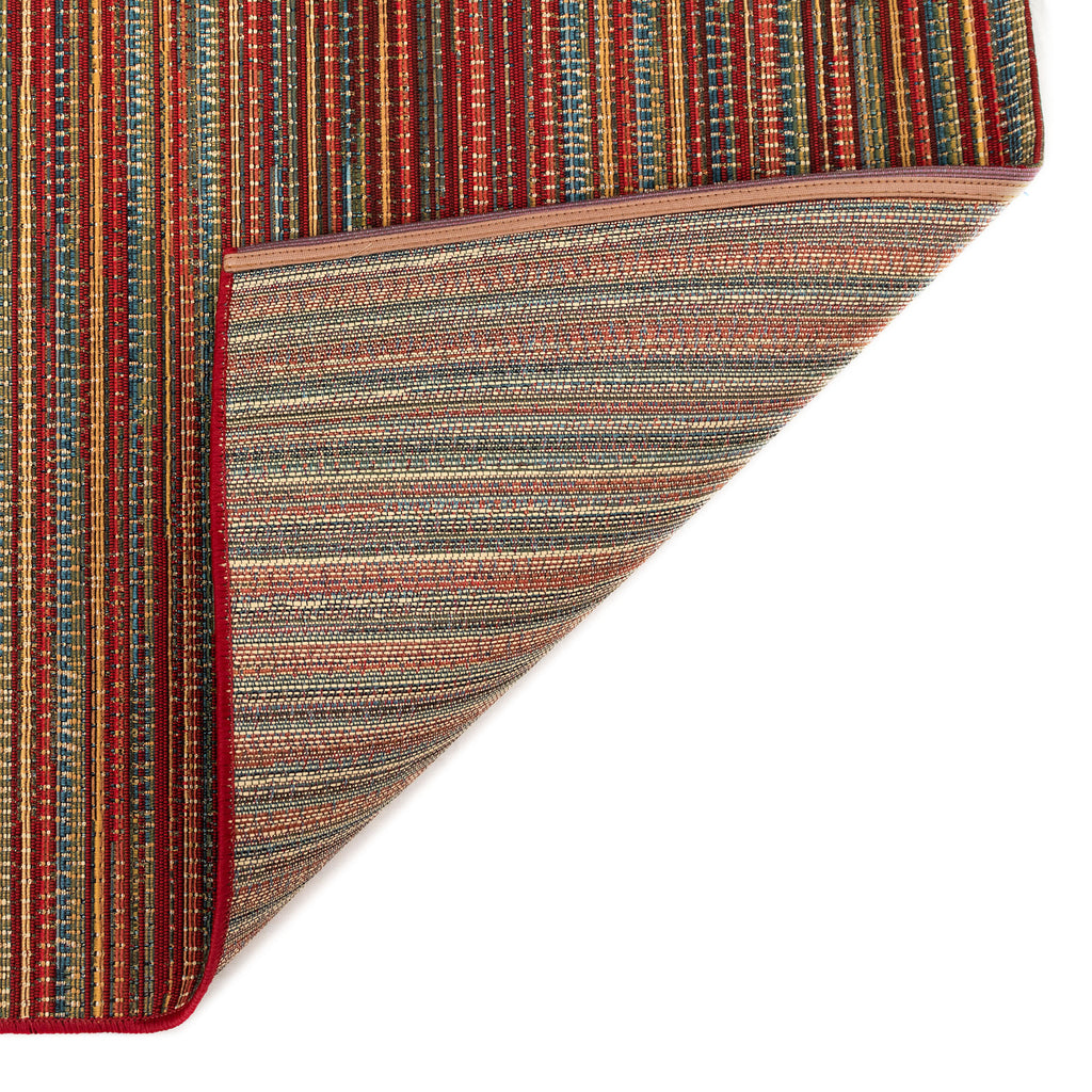 The Stripe pattern showcases multiple colors in a rich, textural weave. This area rug is machine woven of stain-resistant and fade-resistant polypropylene in a low profile pile, perfect for rolling out in high-traffic areas inside or outside the home. Marina is masterfully wilton woven of 100% weather-resistant material enhancing it's durability. It's soft polypropylene pile creates the perfect soft floor covering underfoot. The low-profile nature of Marina offers a casual lifestyle look with versatility to use nearly anywhere inside or outside the home. It is treated for fade resistance to ensure long-lasting beauty. Limiting exposure to rain, moisture and direct sun will prolong rug life.