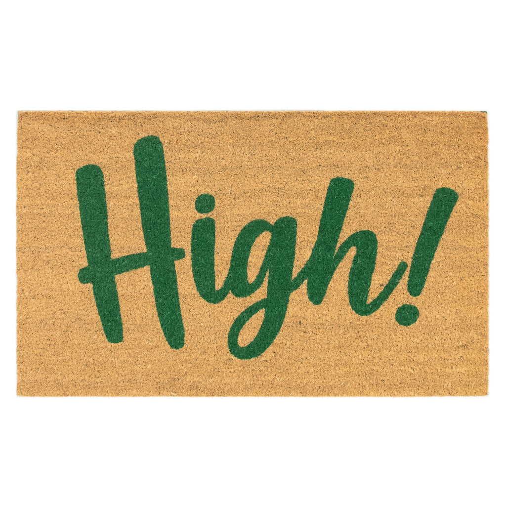 Our High! Mat is a bright themed mat that is sure to show your enthusiasm at your front door. Natura coir doormats are durable and beautiful. Crafted from 100% coir which is an all-natural material known for its strength. Coir is eco-friendly, made from natural fibers which are extracted from the outer shell of a coconut known for its strength and durability. Natura coir mats feature a durable vinyl back and a stiff, durable natural coir front perfect for wiping shoes before entering the home, keeping it tidy. They are available in a wide variety of designs ranging from classic and inspirational to nautical patterns. Dyes saturate the fibers for long-lasting color.