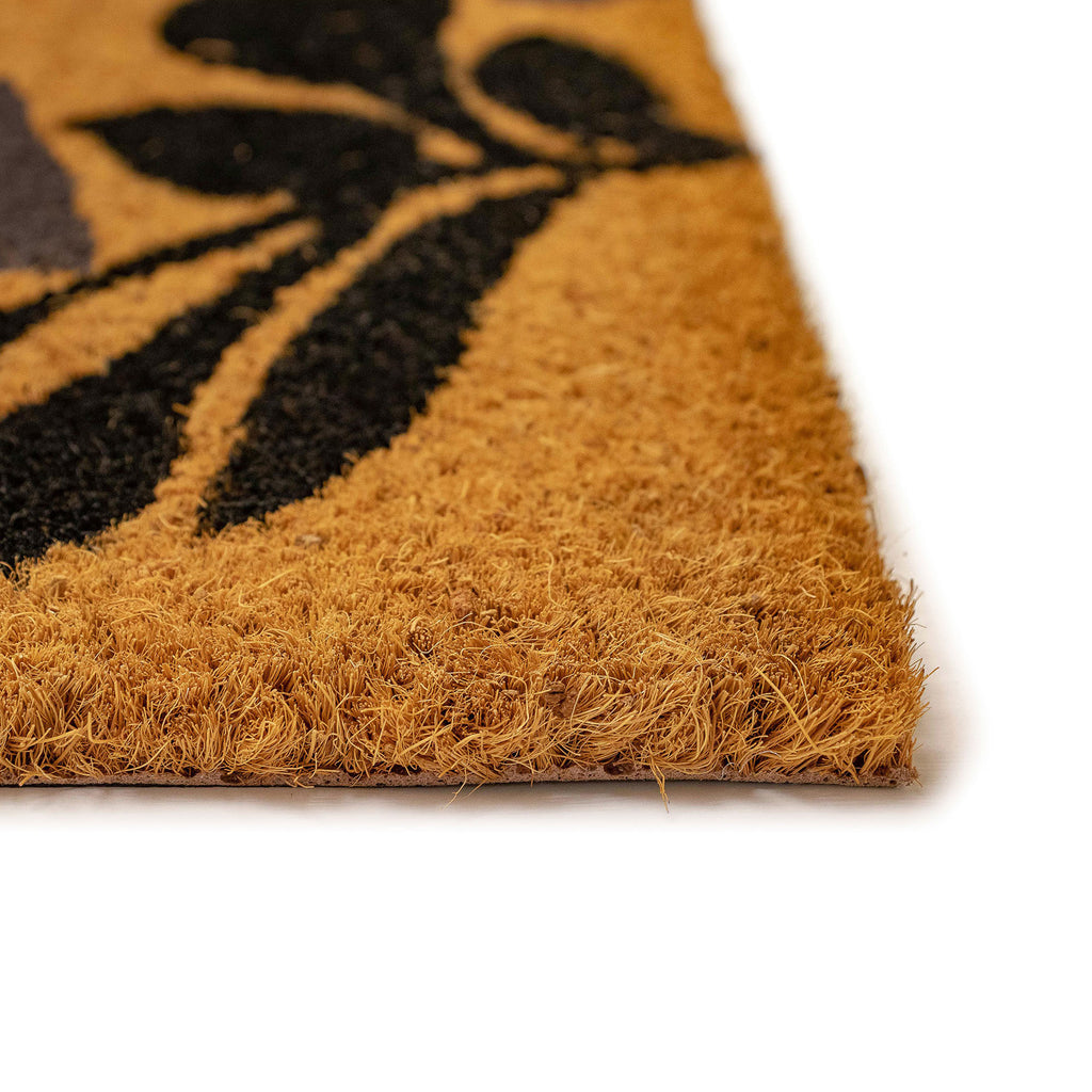 Our Leaves Border mat features a subtle leaf design detail adding a hint of color and sophistication to your threshold. Our coir utility mats are practical yet add character and personality to your entryway. Natura coir doormats are durable and beautiful. Crafted from 100% coir which is an all-natural material known for its strength. Coir is eco-friendly, made from natural fibers which are extracted from the outer shell of a coconut known for its strength and durability. Natura coir mats feature a durable vinyl back and a stiff, durable natural coir front perfect for wiping shoes before entering the home, keeping it tidy. They are available in a wide variety of designs ranging from classic and inspirational to nautical patterns. Dyes saturate the fibers for long-lasting color.