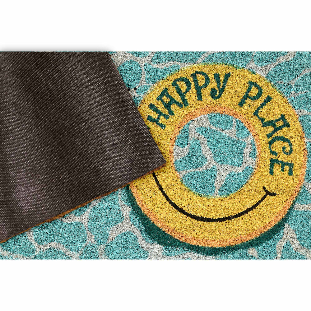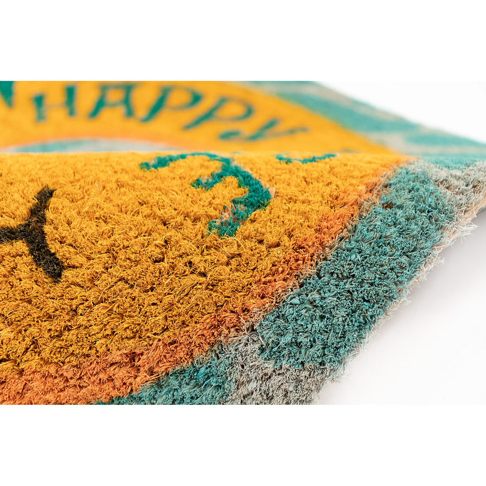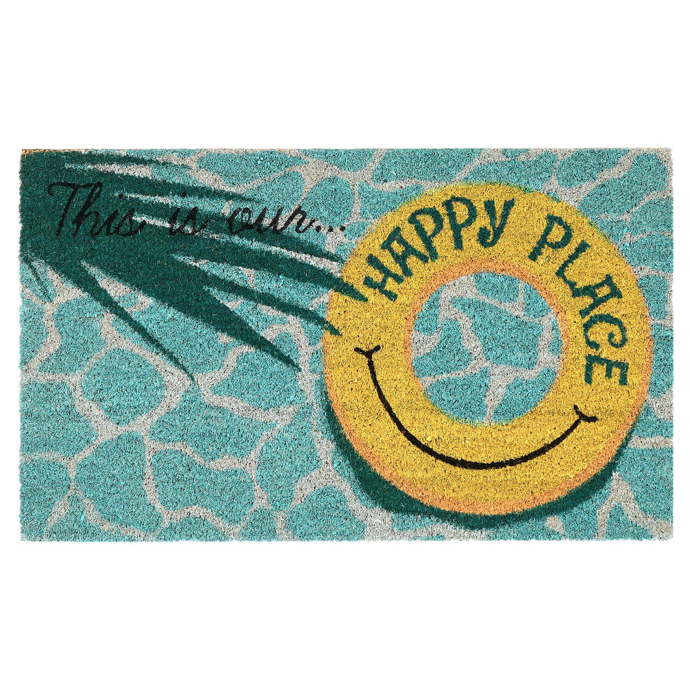 Express yourself and create a sense of comfort at your doorstep with our This Is Our Happy Place mat. Natura coir doormats are durable and beautiful. Crafted from 100% coir which is an all-natural material known for its strength. Coir is eco-friendly, made from natural fibers which are extracted from the outer shell of a coconut known for its strength and durability. Natura coir mats feature a durable vinyl back and a stiff, durable natural coir front perfect for wiping shoes before entering the home, keeping it tidy. They are available in a wide variety of designs ranging from classic and inspirational to nautical patterns. Dyes saturate the fibers for long-lasting color.