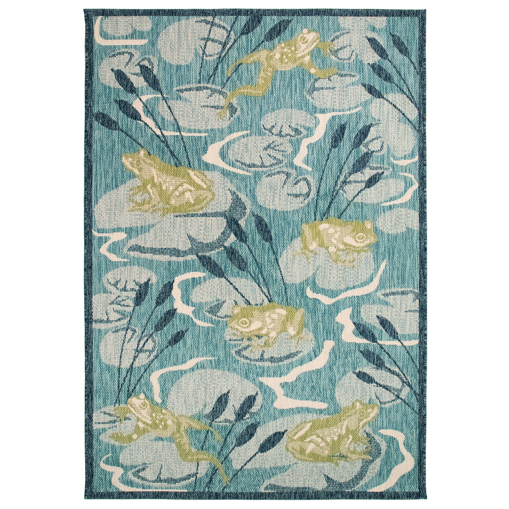 This pattern features serene images of adorable frogs perched on lily pads surrounded by a soft palette of outdoor garden colors. Wilton Woven of weather-resistant polypropylene, this flatwoven collection has subtle and natural beauty. Portofino offers a casual look with a low profile and versatility to use anywhere inside or outside the home. The collection is also treated for fade resistance to ensure long-lasting beauty.