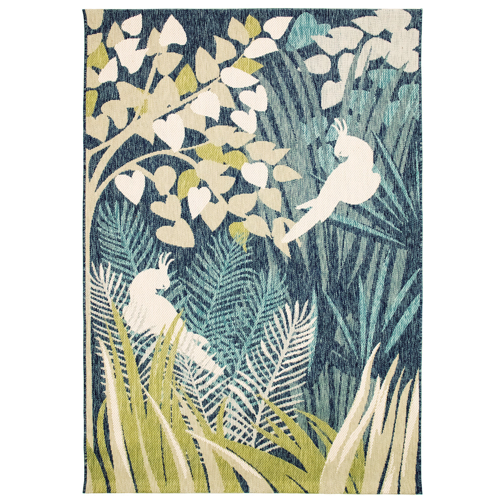 This pattern captures a pair of parrots in the calming colors of the tropical forest and is sure to inspire an island vibe for your room. Wilton Woven of weather-resistant polypropylene, this flatwoven collection has subtle and natural beauty. Portofino offers a casual look with a low profile and versatility to use anywhere inside or outside the home. The collection is also treated for fade resistance to ensure long-lasting beauty.