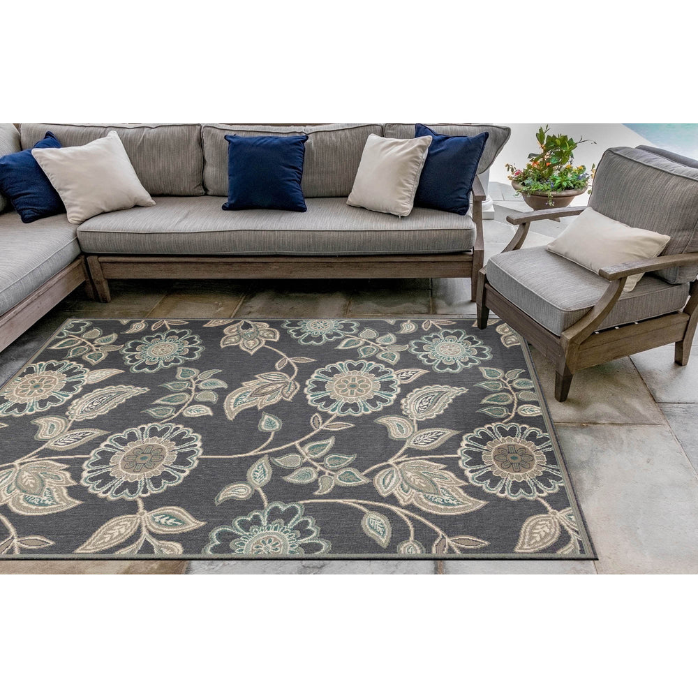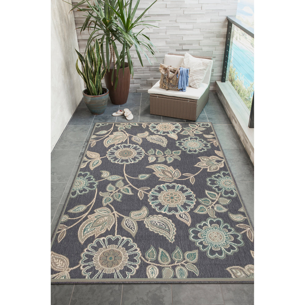 Floral Vine is an easy-care, casual lifestyle rug featuring an oversized floral pattern in beautifully blended colors that will enhance any decor. Wilton Woven of 100% polypropylene, these vibrant, weather-resistant rugs are low-profile and durable yet feature a subtle pile creating a unique floor covering which is both versatile and soft underfoot. The low-profile nature of Riviera offers a casual lifestyle look with versatility to use nearly anywhere inside or outside the home. It is treated for fade resistance to ensure long-lasting beauty. Limiting exposure to rain, moisture and direct sun will prolong rug life.