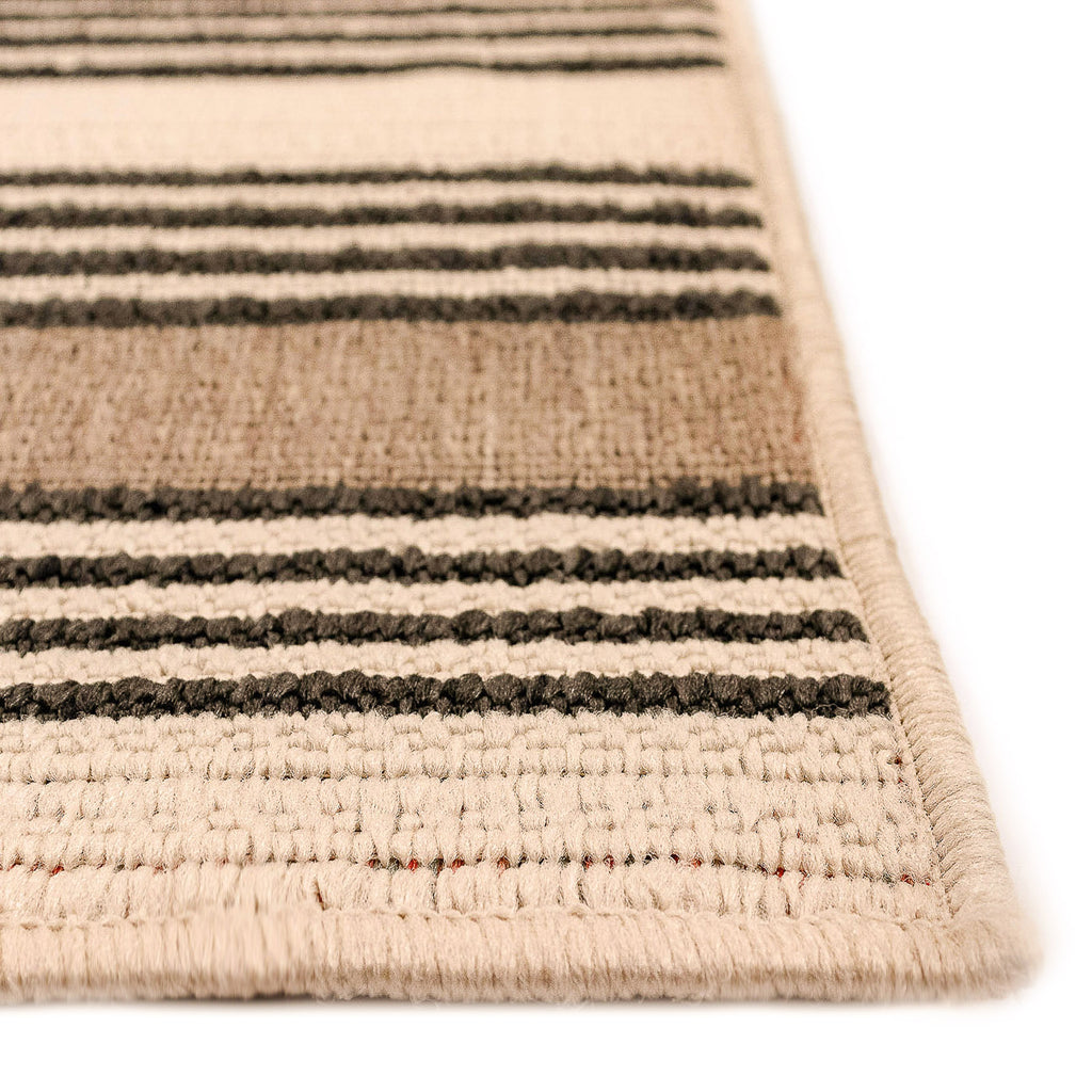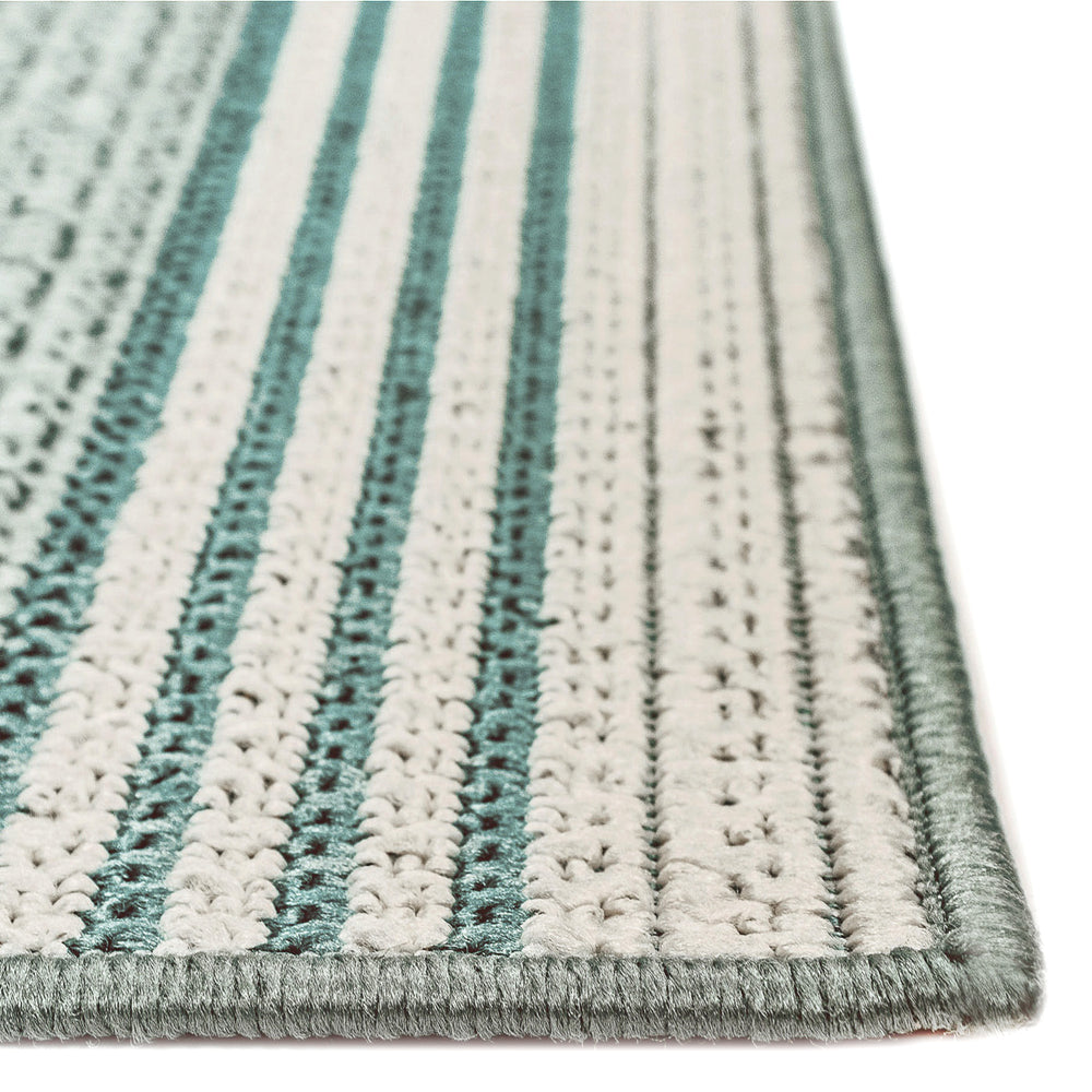 Our Stripe rug is simple and classic yet features an interesting color combination enhancing the clean and crisp look of the rug. It sets the tone in a space, adding subtle sophistication to the room. Wilton Woven of 100% polypropylene, these vibrant, weather-resistant rugs are low-profile and durable yet feature a subtle pile creating a unique floor covering which is both versatile and soft underfoot. The low-profile nature of Riviera offers a casual lifestyle look with versatility to use nearly anywhere inside or outside the home. It is treated for fade resistance to ensure long-lasting beauty. Limiting exposure to rain, moisture and direct sun will prolong rug life.