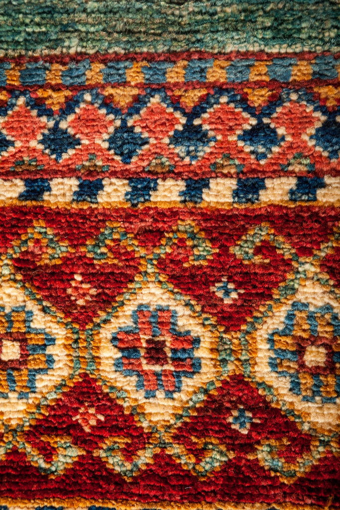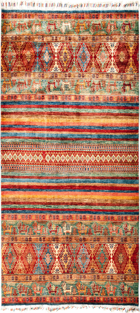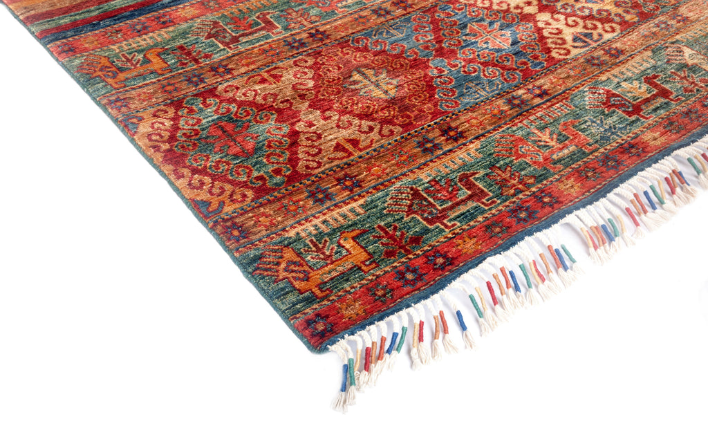 These area rugs resemble traditional Persian style tribal village designs. These rugs are bold, striking and colorful. South Persian tribal pieces, true Ziegler Sultanabads, and almost any non-urban Iranian weaving has been interpreted and creatively adapted. These carpets are directly appealing and therefore work well in any context, overall style or period.